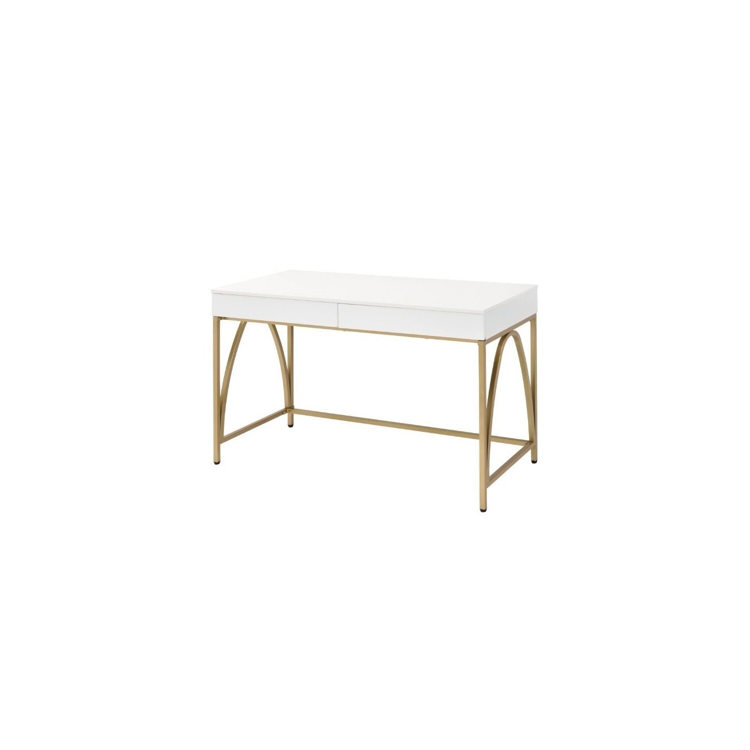 Modern Writing Desk with Drawers - Home Office Desk - Gold Metal Legs - White Gloss Finish