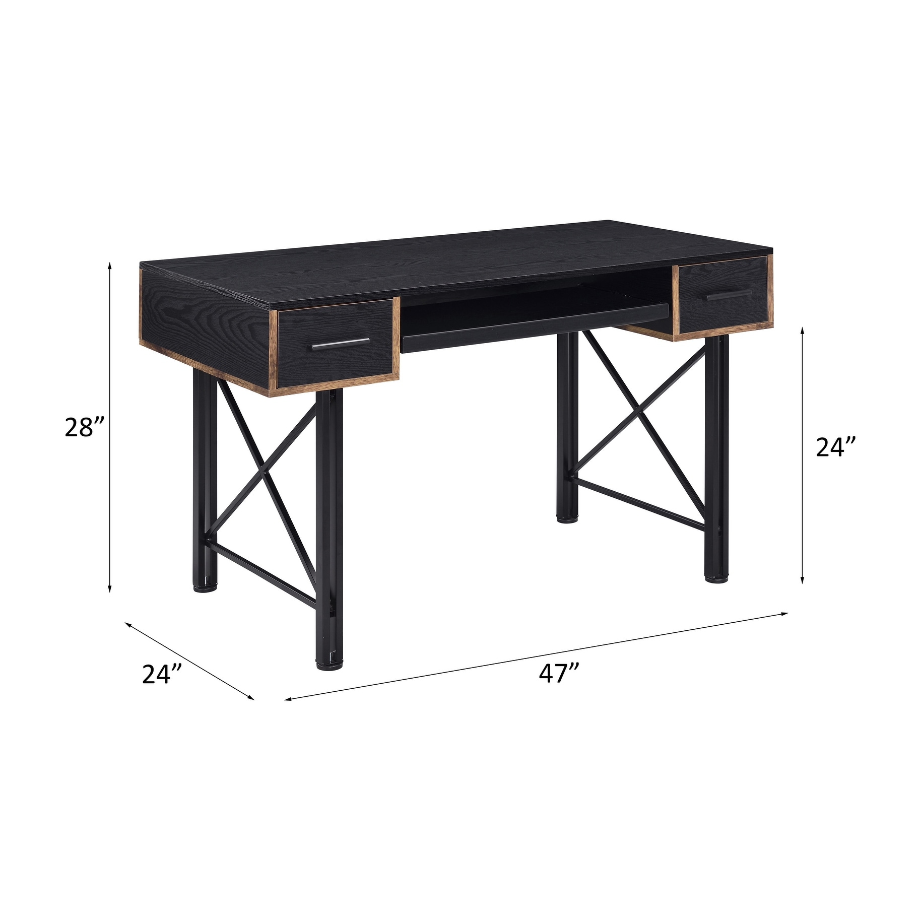 Modern 48" Computer Desk with 2 Side Storage Drawers and Metal Legs