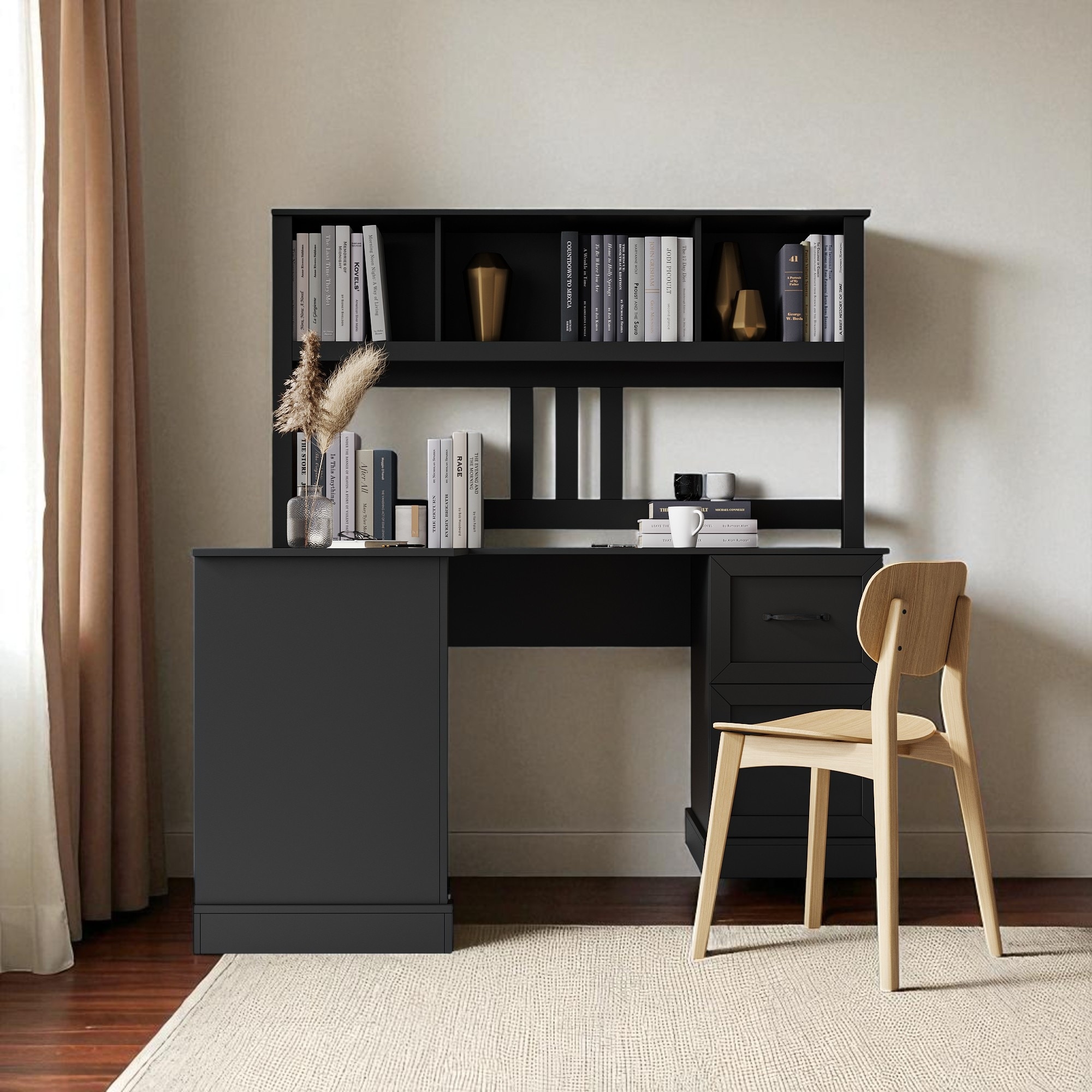 Home Office Computer Desk with Hutch, 2-Tier Shelf, Large Drawers, Waterproof Desktop, Ideal for Study, Living Room, and Office