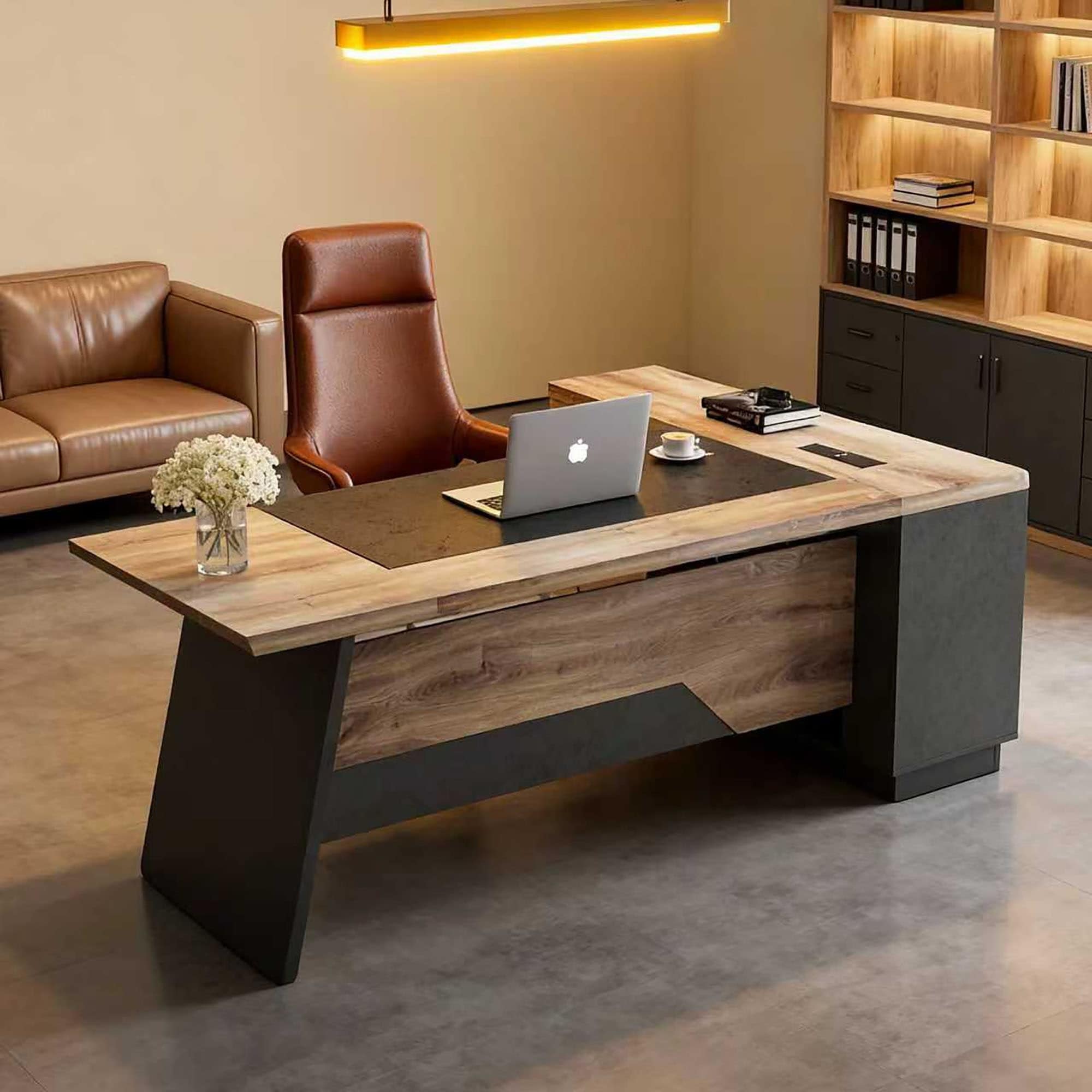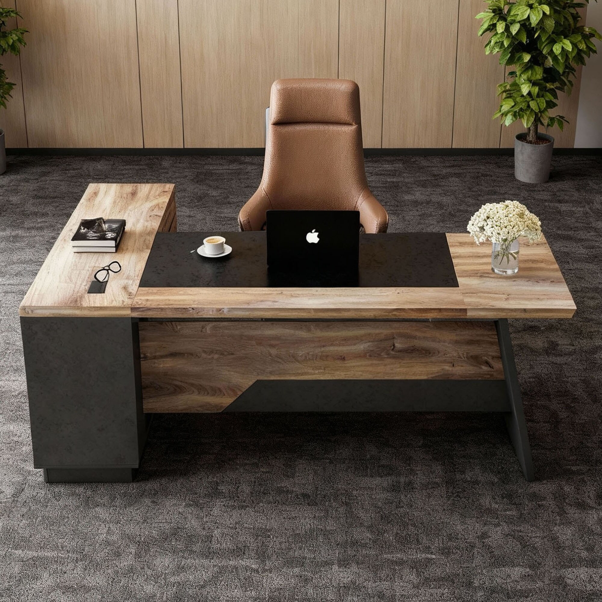 78.74 Inches L-Shape Executive Desk, Industrial Wood Desk with Cabinet Drawer Storage Shelves