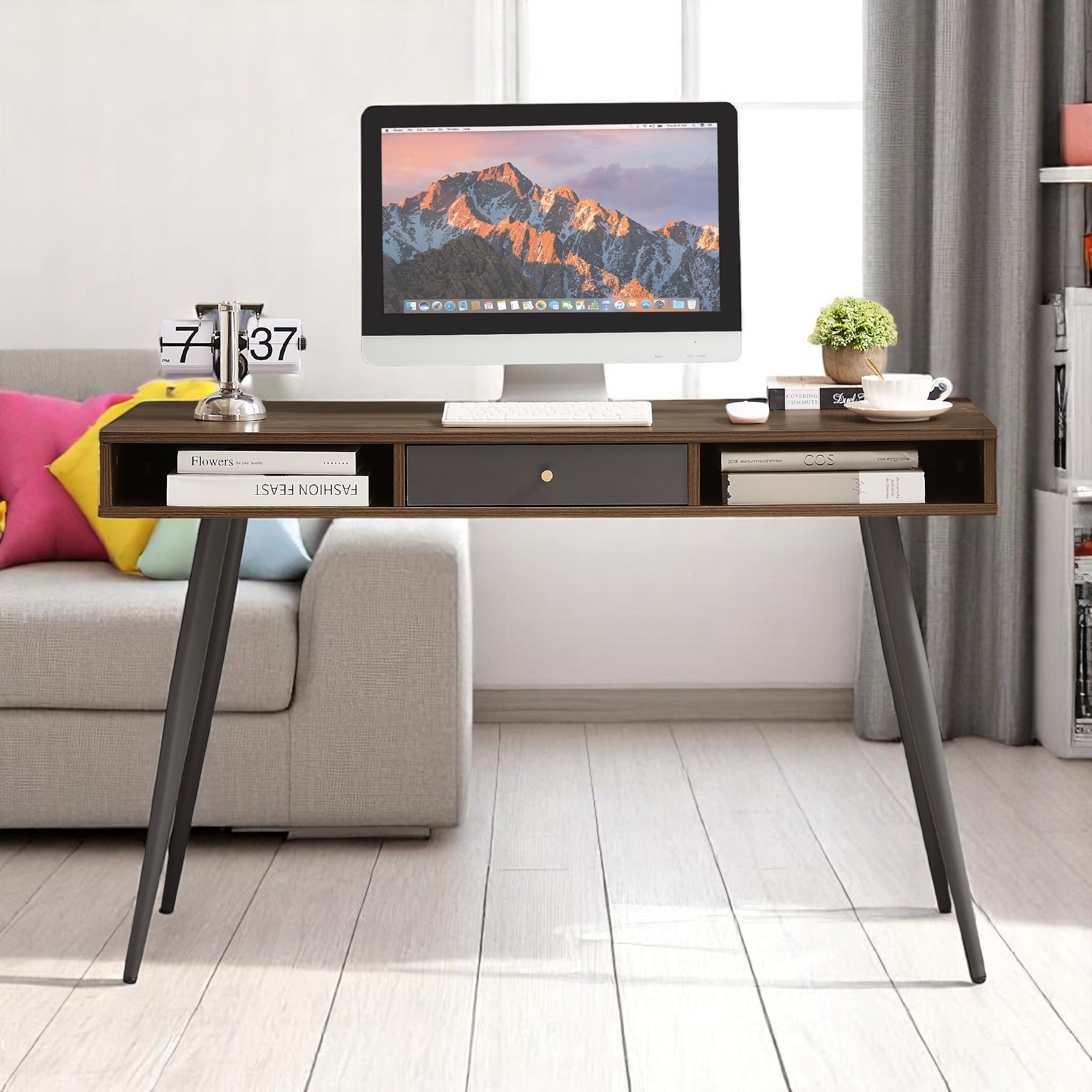 Mid Century Desk Modern Writing Study Desk With Drawers Multifunctional Home Office Computer Desk