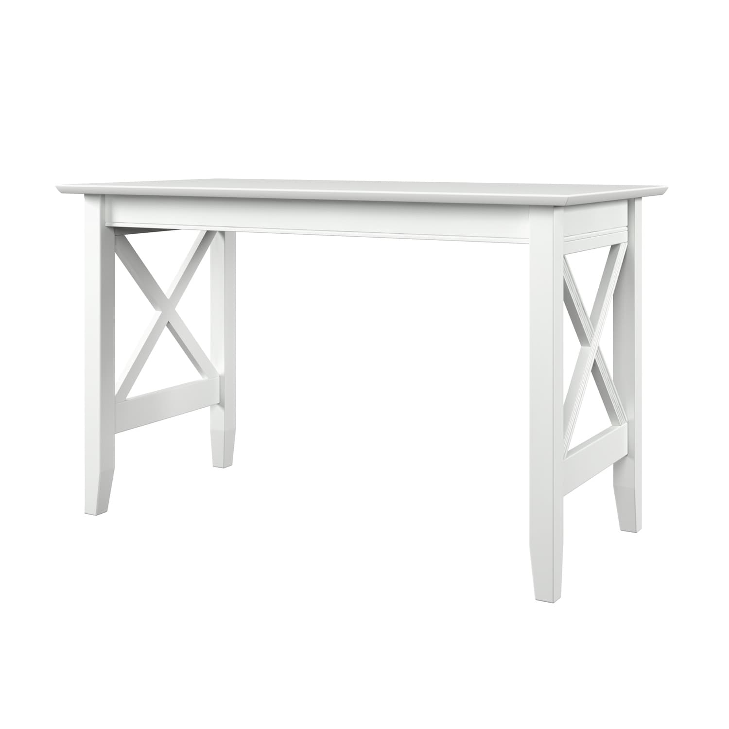 Desk with USB Charger - White Writing Desk with X Design - Solid Wood Desktop for Home Office