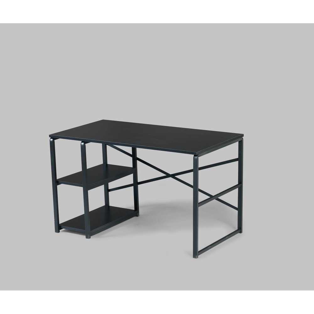 47 Inch Black Wooden Computer Desk with Metal Frame and Shelves
