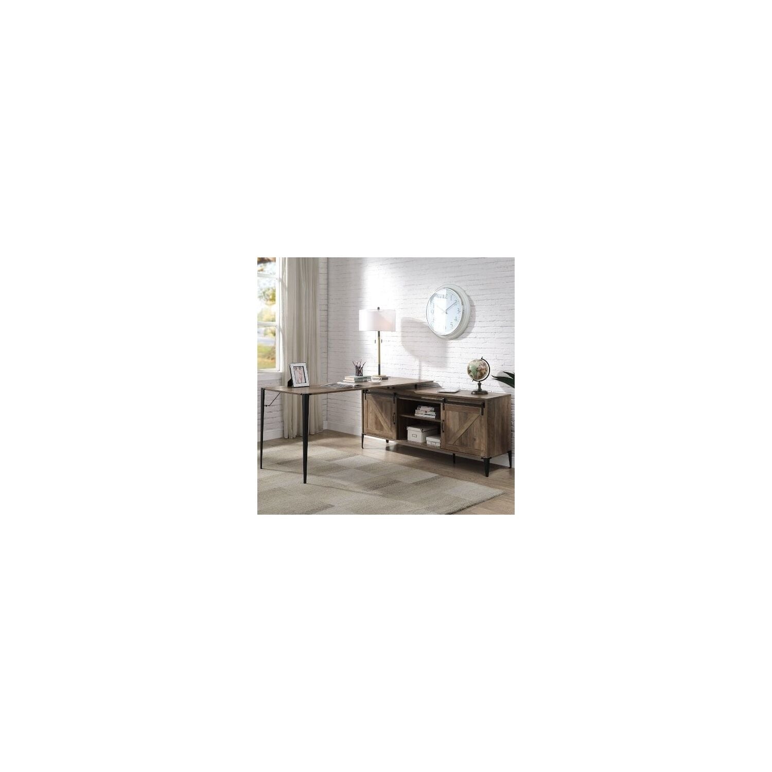Writing Desk with Storage - Rustic Oak & Black Computer Desk, Home Office Desk