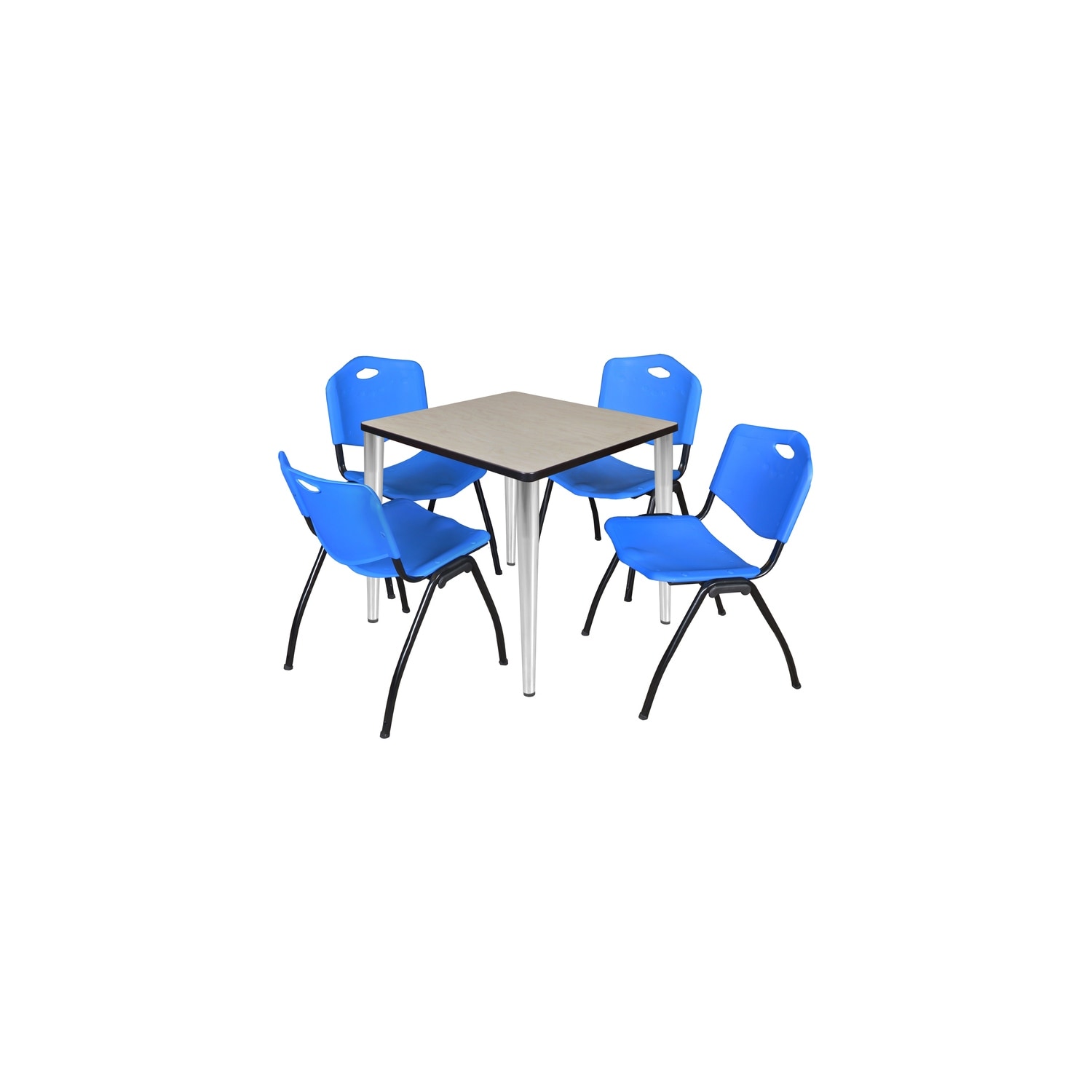 30 in. Square Breakroom Table- Maple Top, Chrome Base & 4 M Stack Chairs- Blue