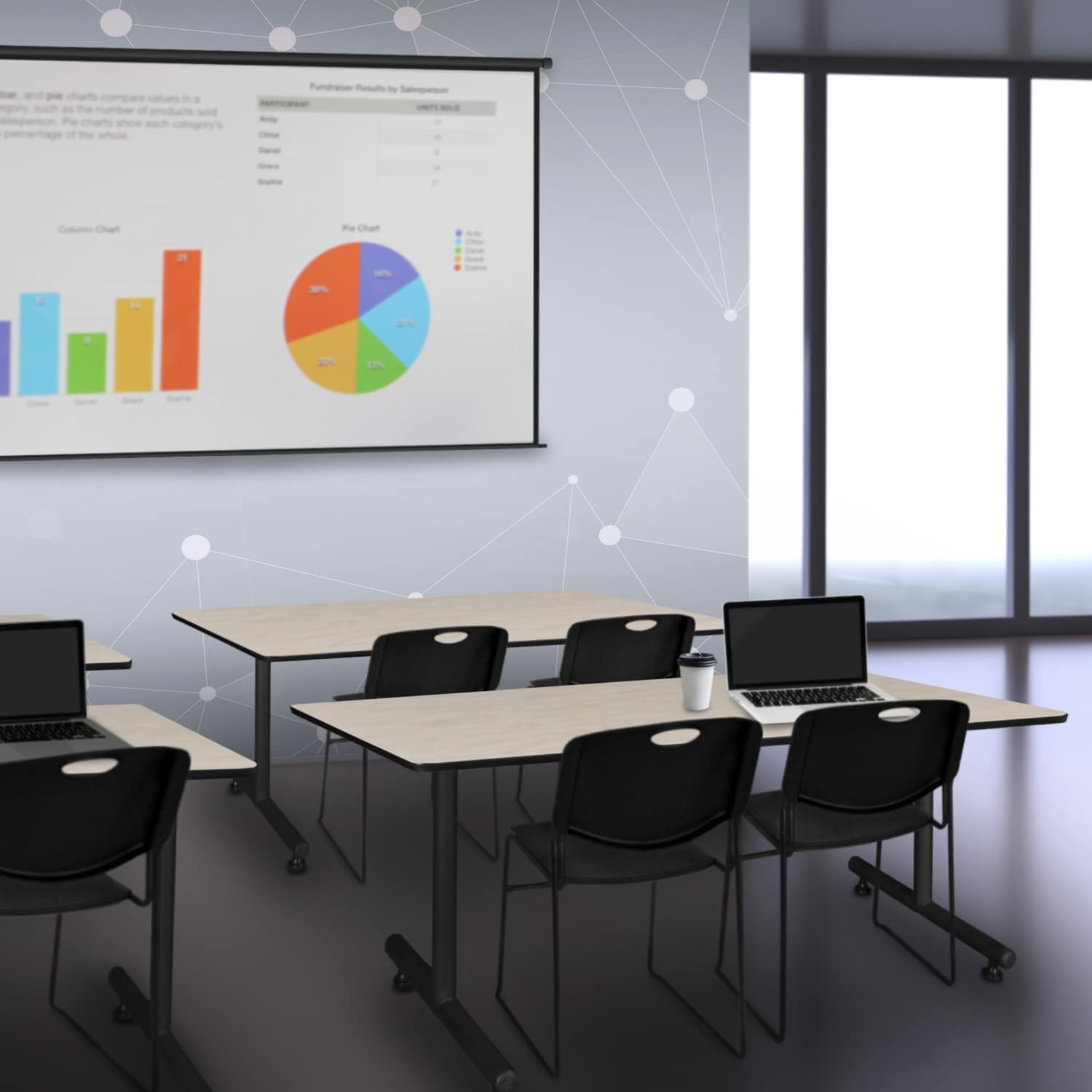 72" x 24" Training Table- Maple & 2 Stack Chairs- Black - 72" x 24"