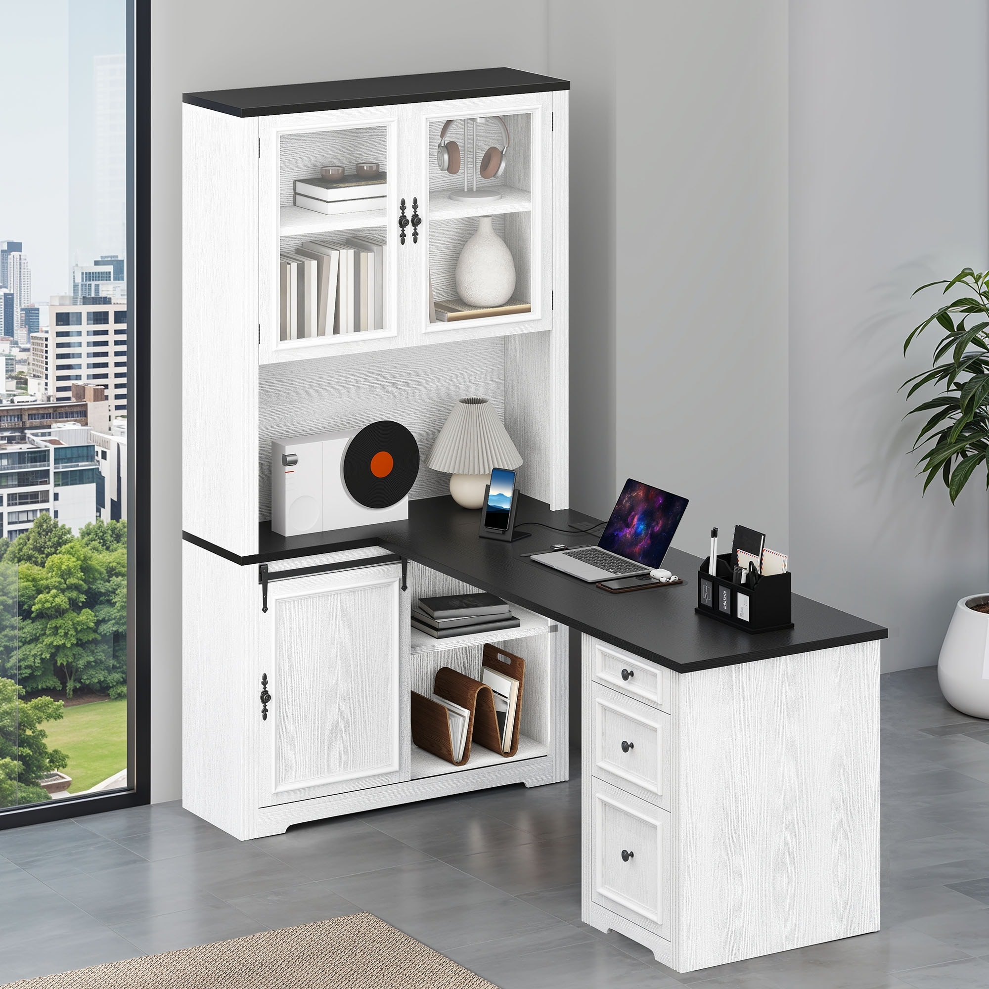 Study Workstation for Home Office,L Shaped Computer Desk,Rotating Corner Desk with Storage Shelves,Drawer and Cabinet