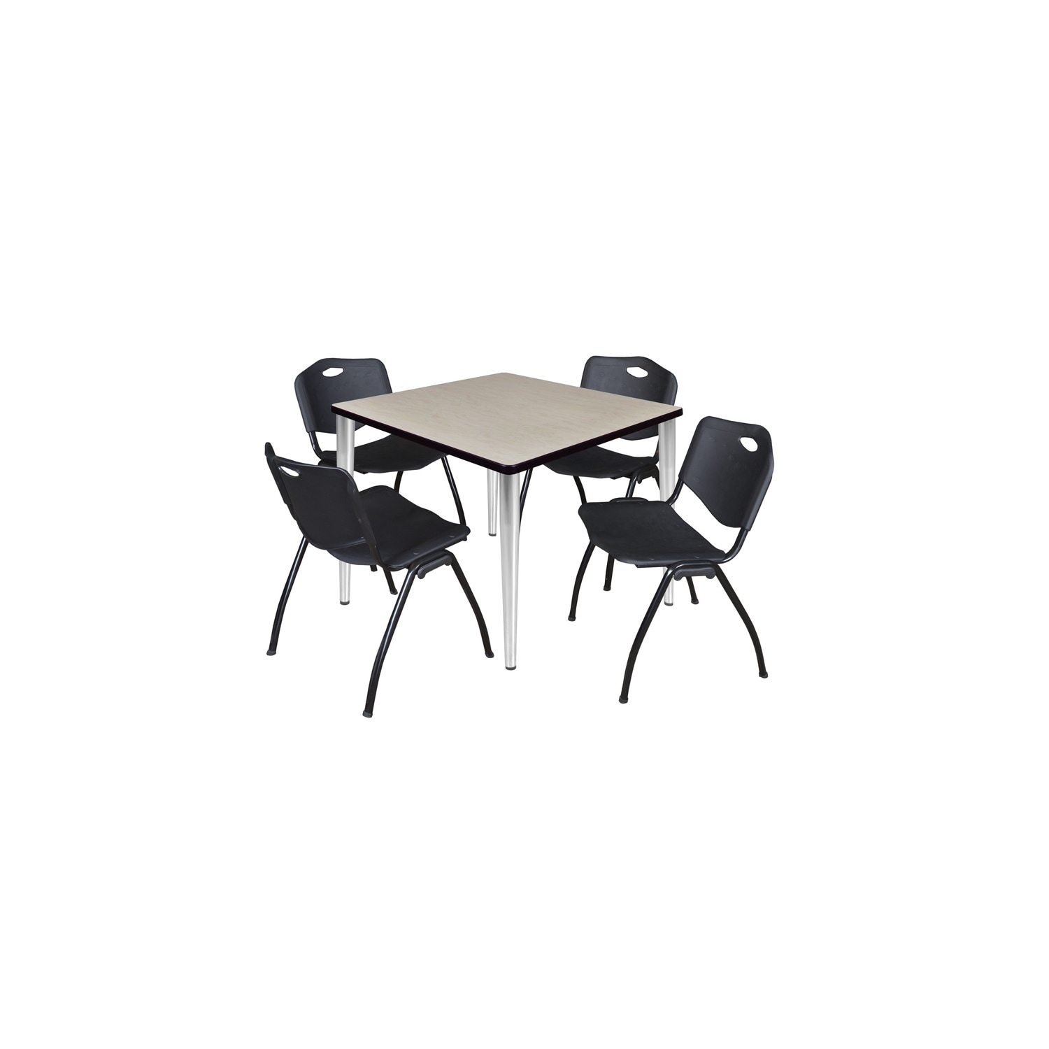 36 in. Square Breakroom Table- Maple Top, Chrome Base & 4 M Stack Chairs- Black
