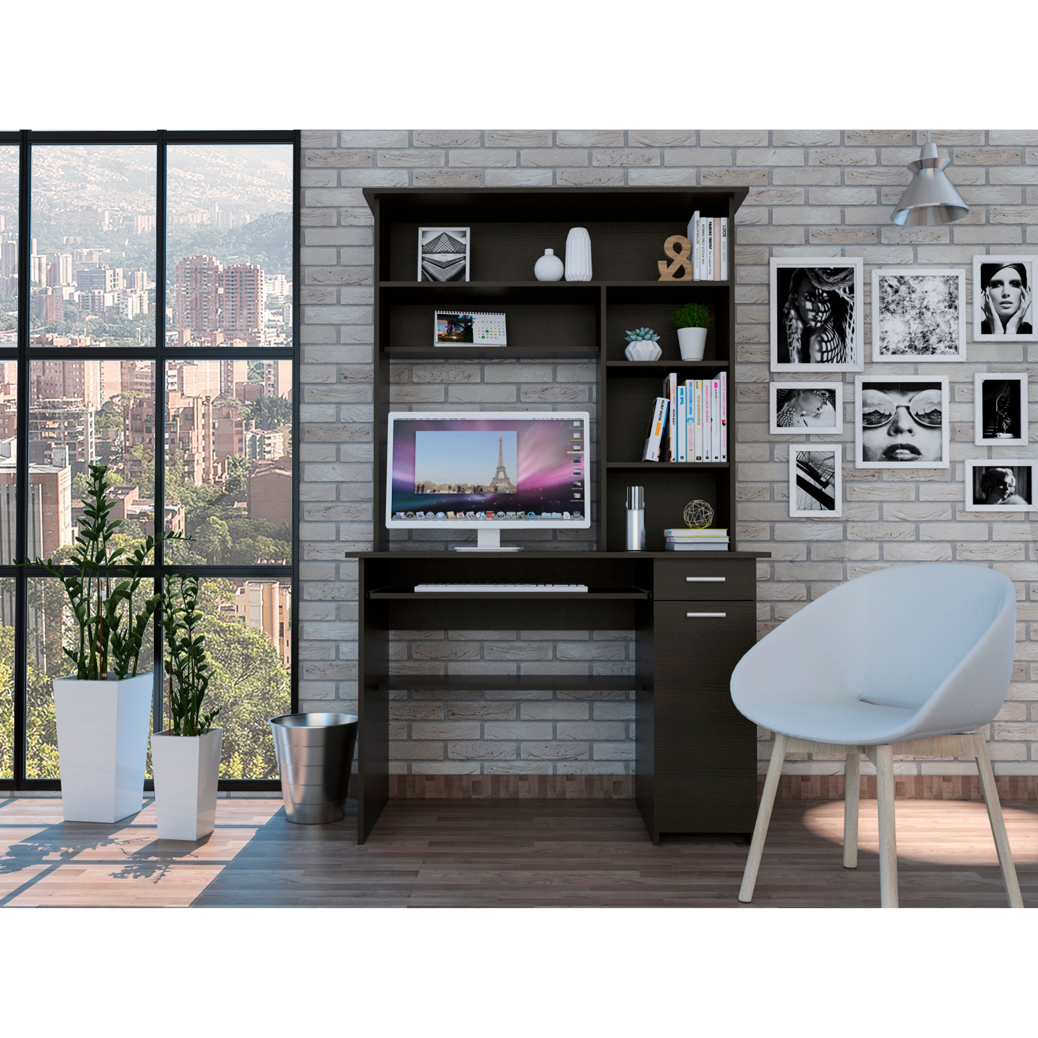 Black Wengue 2-Drawer 7-Shelf Computer Desk With Hutch