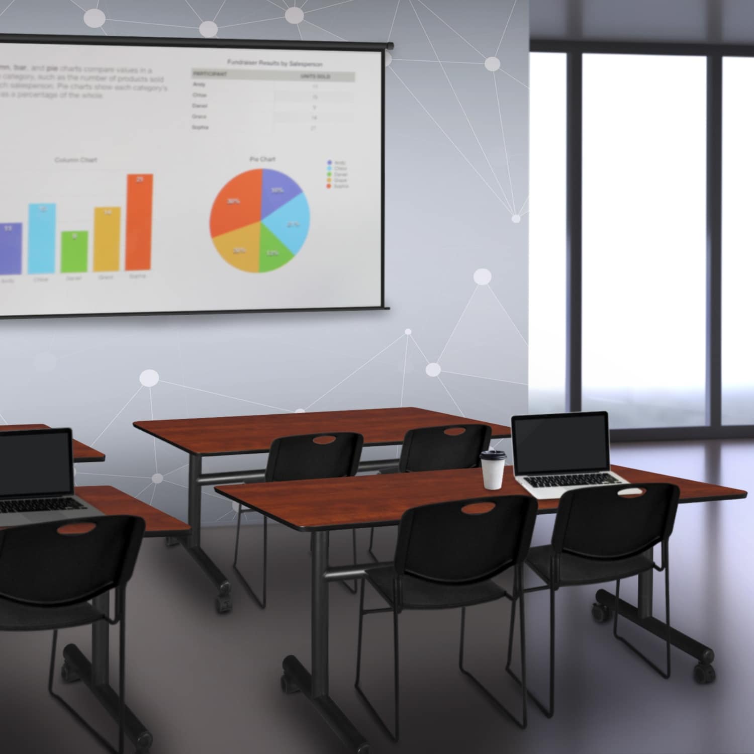 60" Flip Top Mobile Training Table- Cherry & 2 Stack Chairs- Black