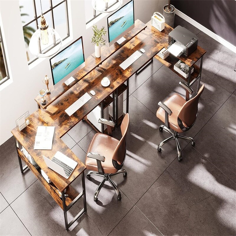 Computer Desk, Home Office, Corner, Storage Shelves