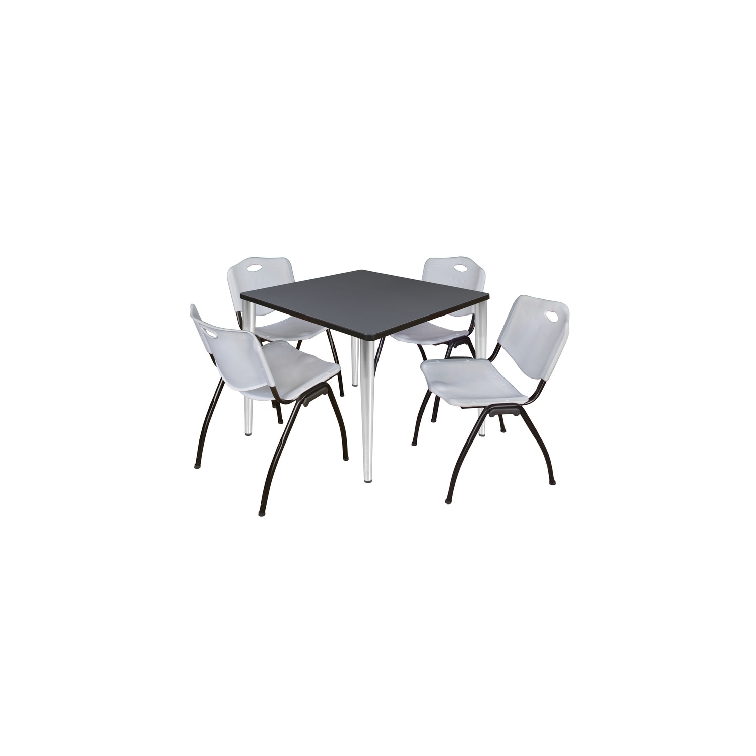 36 in. Square Breakroom Table- Grey Top, Chrome Base & 4 M Stack Chairs- Grey