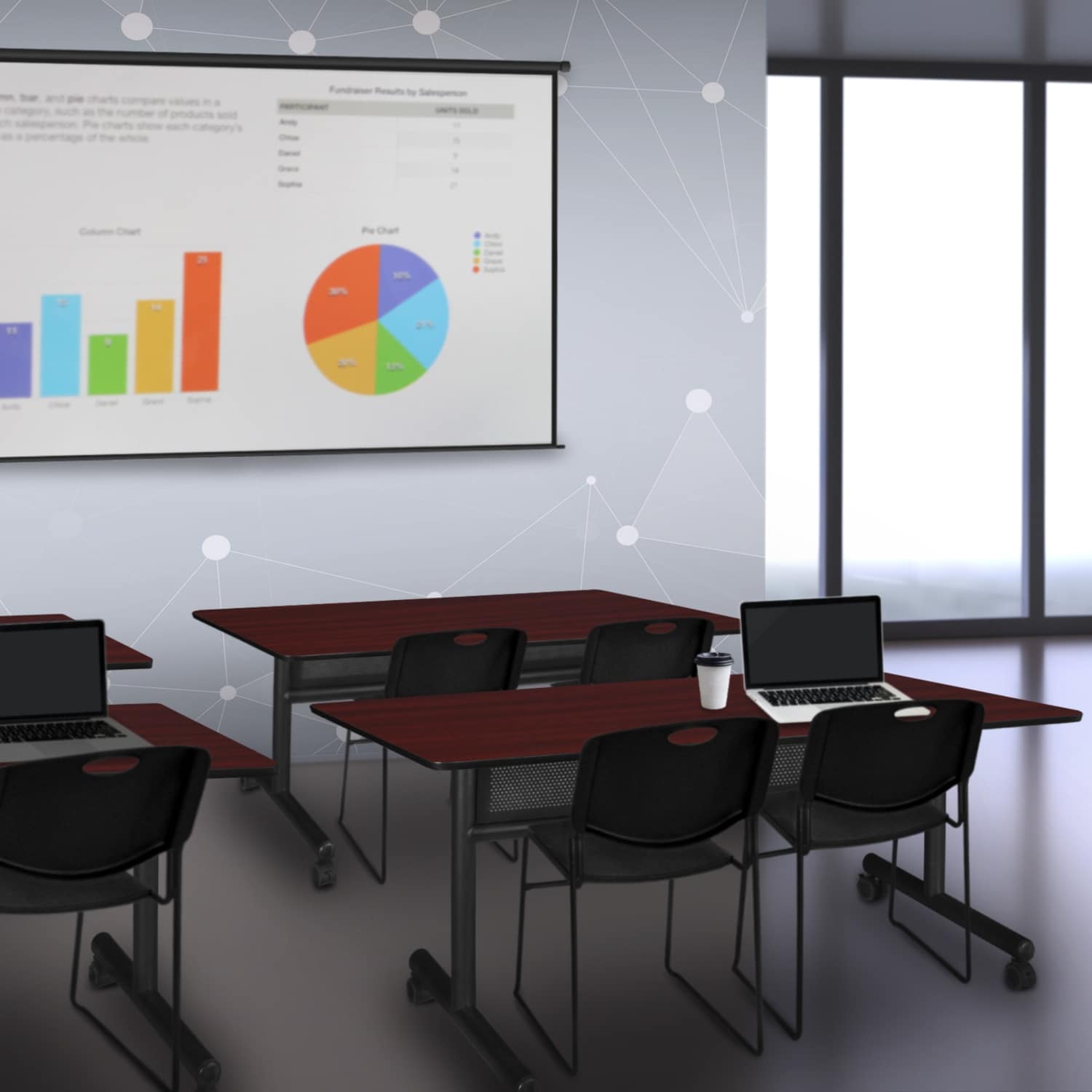 72" x 30" Flip Top Mobile Training Table with Modesty Panel- Mahogany and 2 Stack Chairs- Black