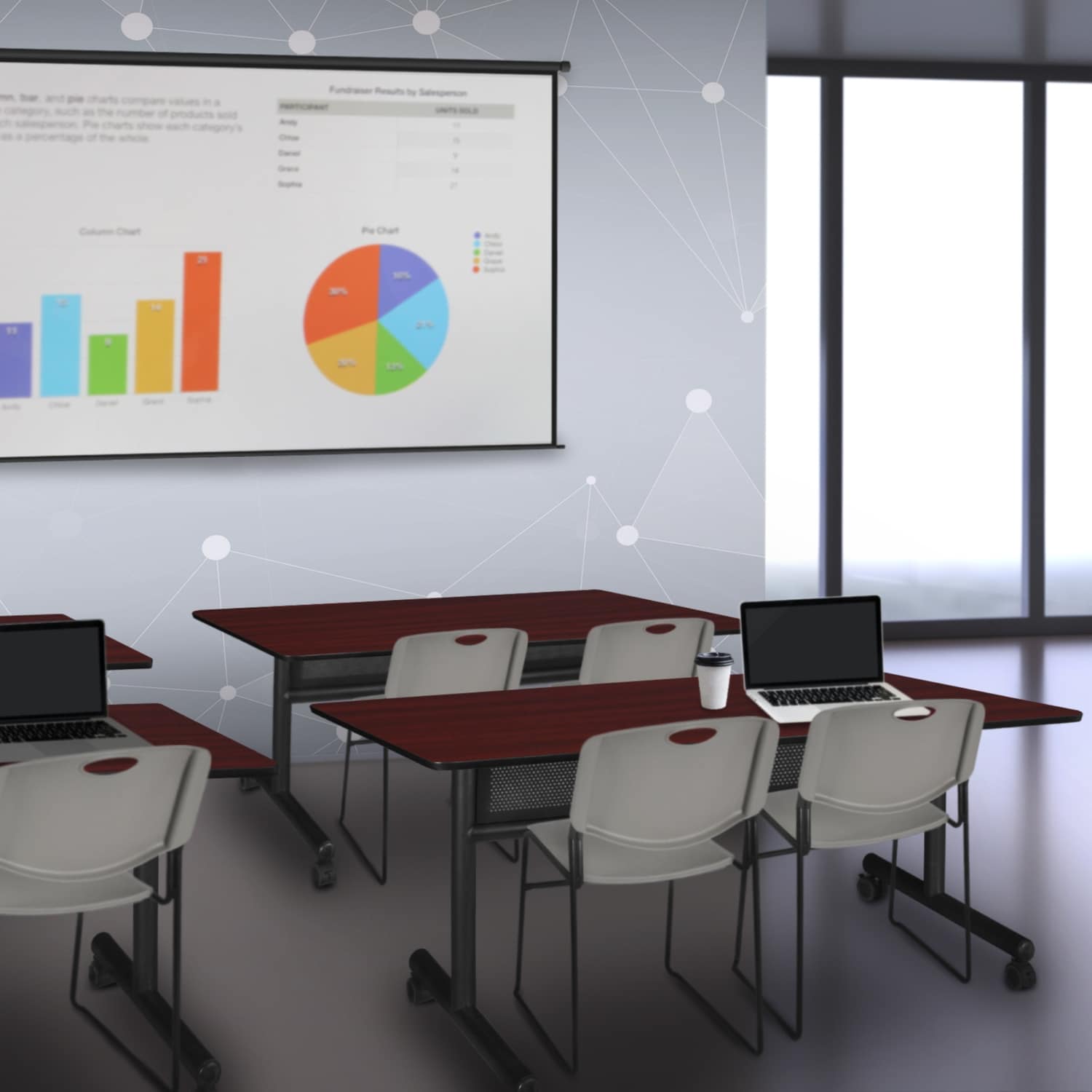 60" x 24" Flip Top Mobile Training Table with Modesty Panel- Mahogany and 2 Stack Chairs- Grey