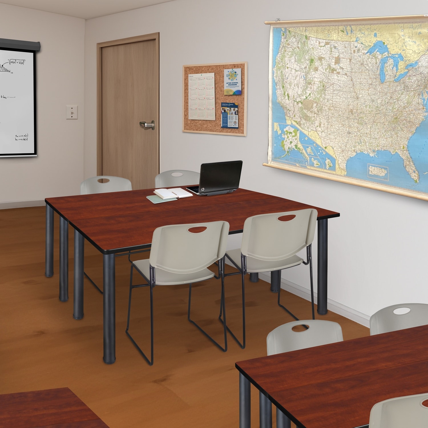 60" x 24" Kee Training Table- Cherry/ Black & 2 Stack Chairs- Grey