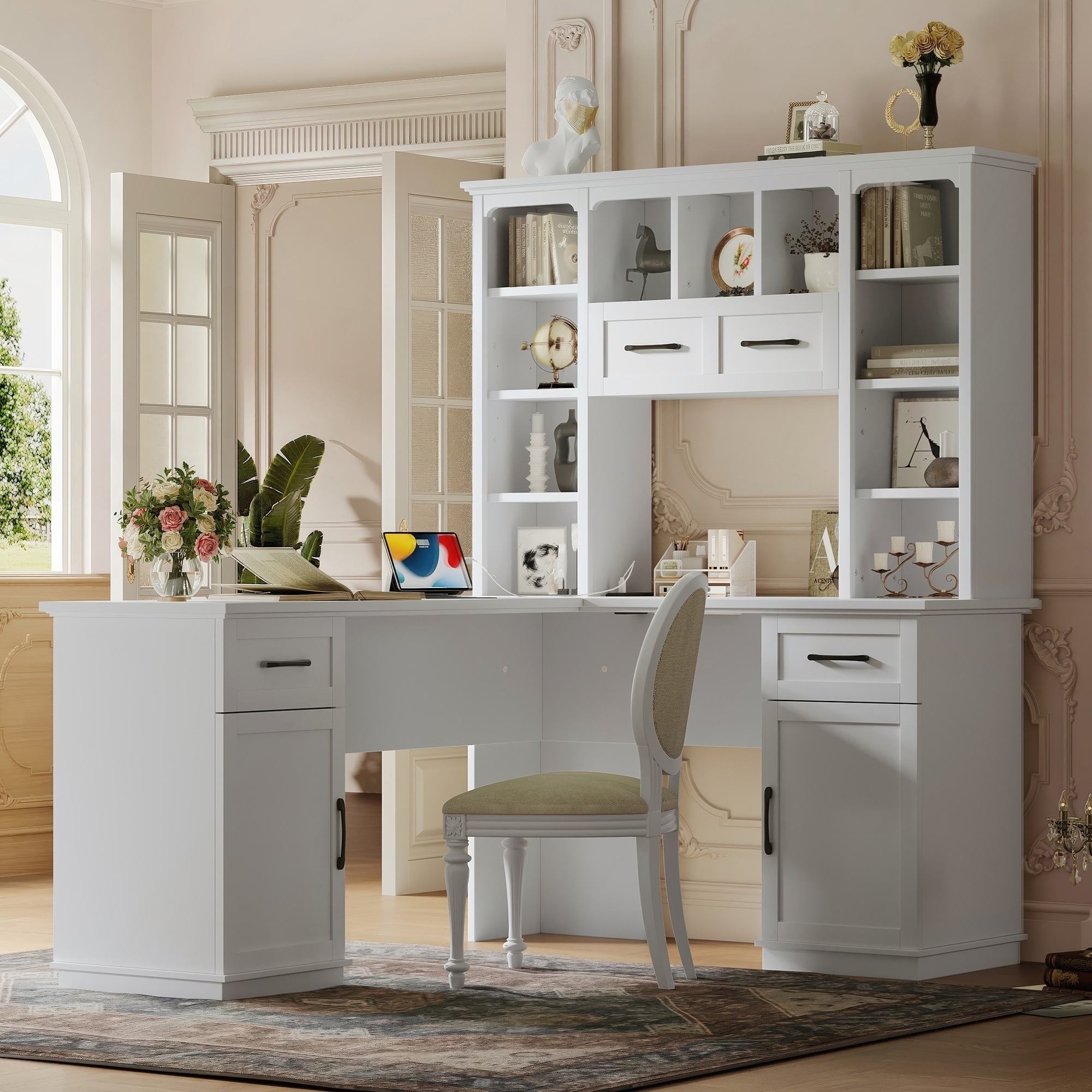 L-Shaped Computer Desk with 2 Cabinets, 2 Drawers, 11 Open Shelves, and Electrical Outlet for Study, Living Room, and Office