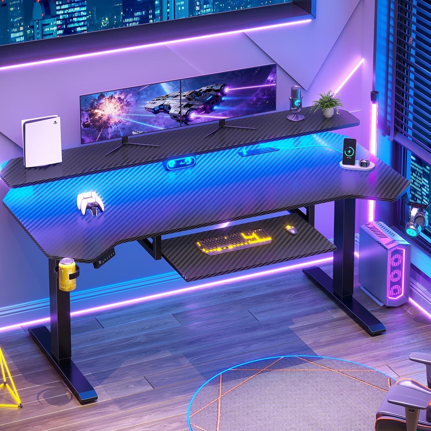 55" Standing Gaming Desk Long Computer Desk Power Strip Keyboard Tray