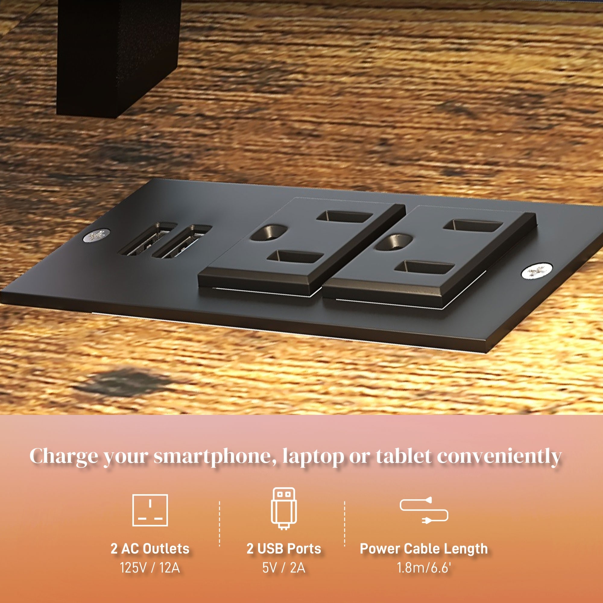 L Shaped Desk with Charger,Computer Desk with Drawers,Bookshelf,Carbon fiber Gaming Computer Desk with Storage,Black
