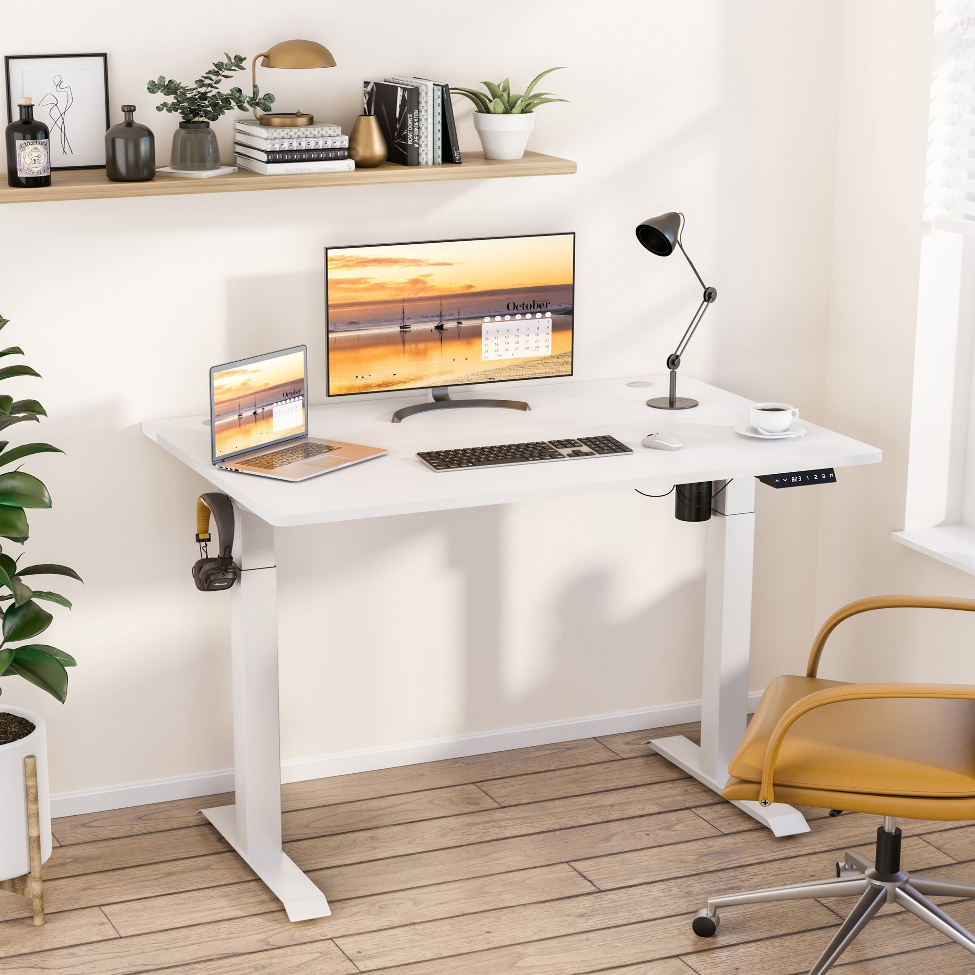 FEZIBO Height Adjustable Electric Standing Desk with 5 Drawers, Table with Storage Shelf, Sit Stand Desk