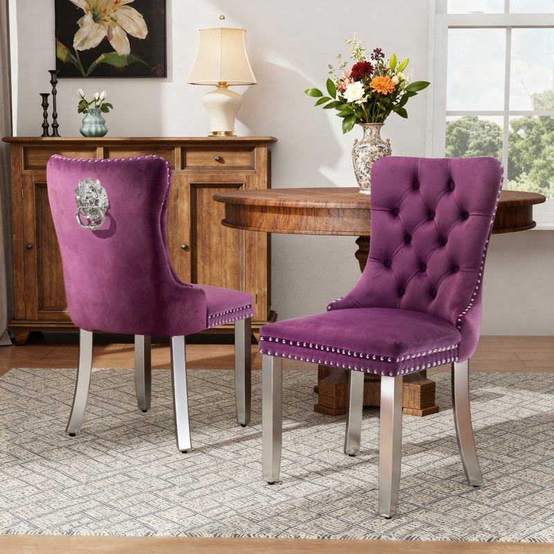 High-end Tufted Velvet Upholstered Nailhead Dining Chair Set of 2