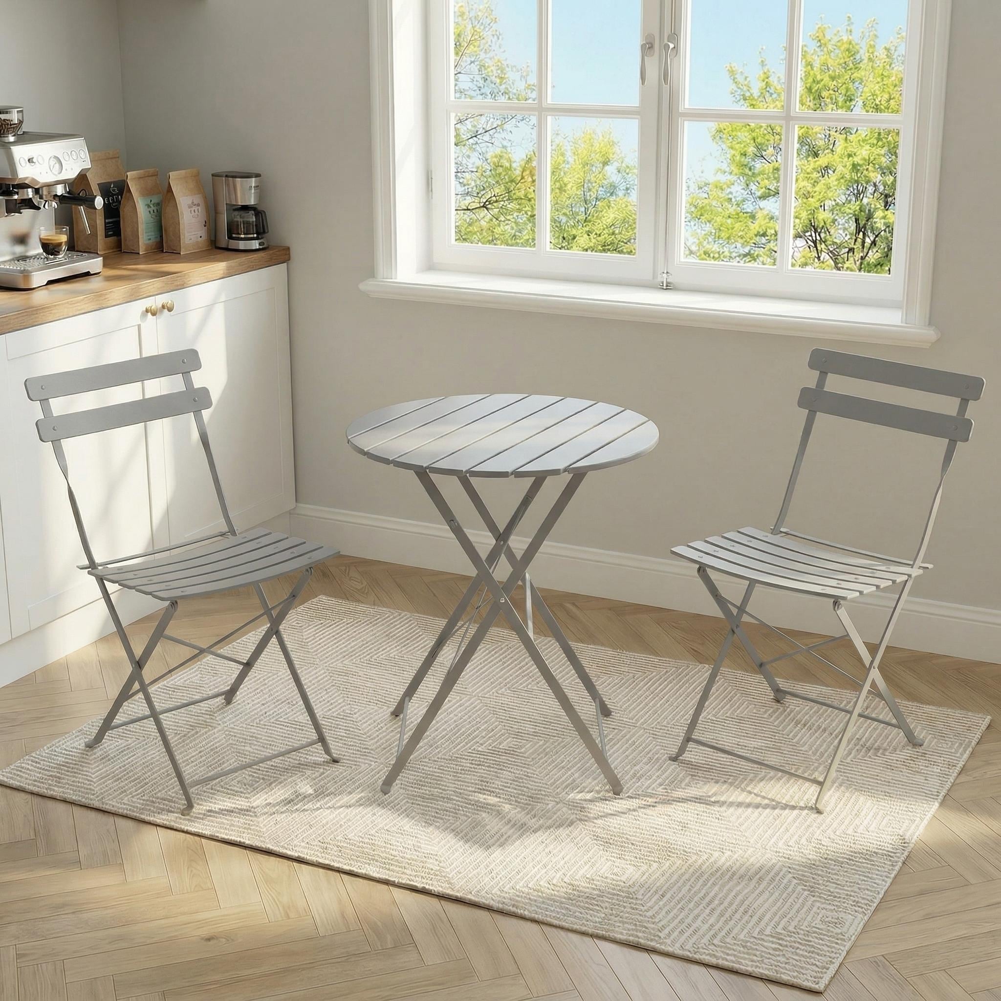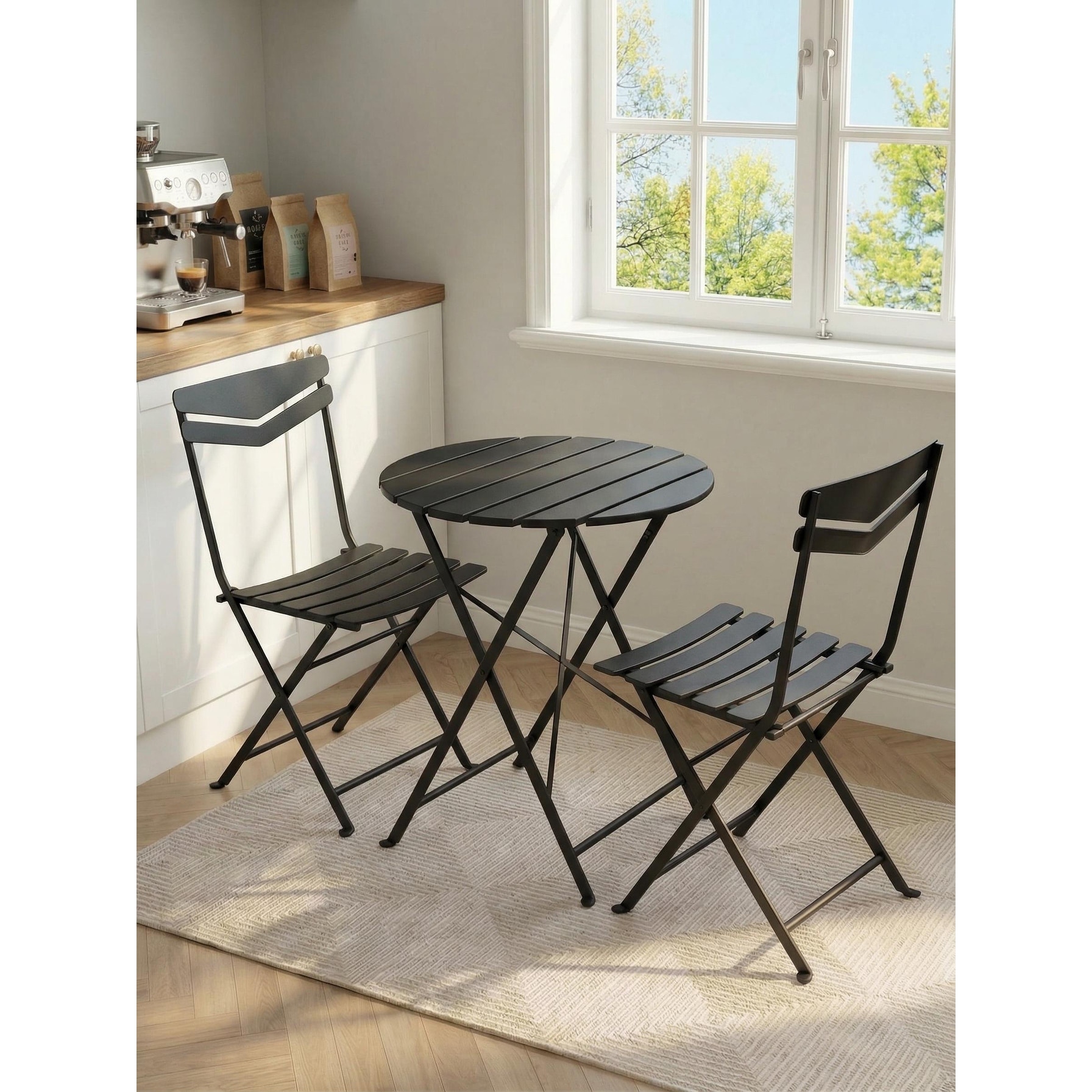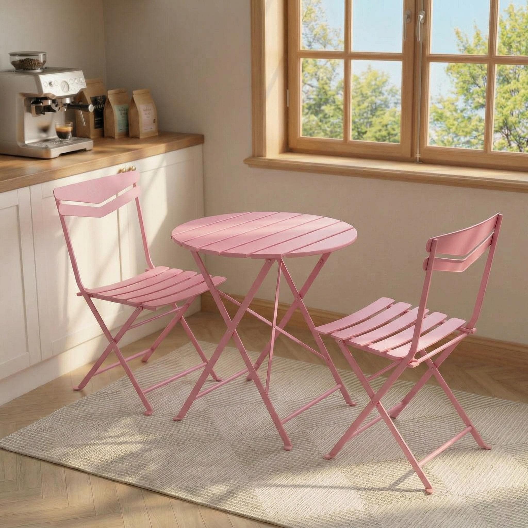 3-Piece Iron Patio Bistro Set, Round-Tube Frame, Arched-Back Style, Multiple Colors