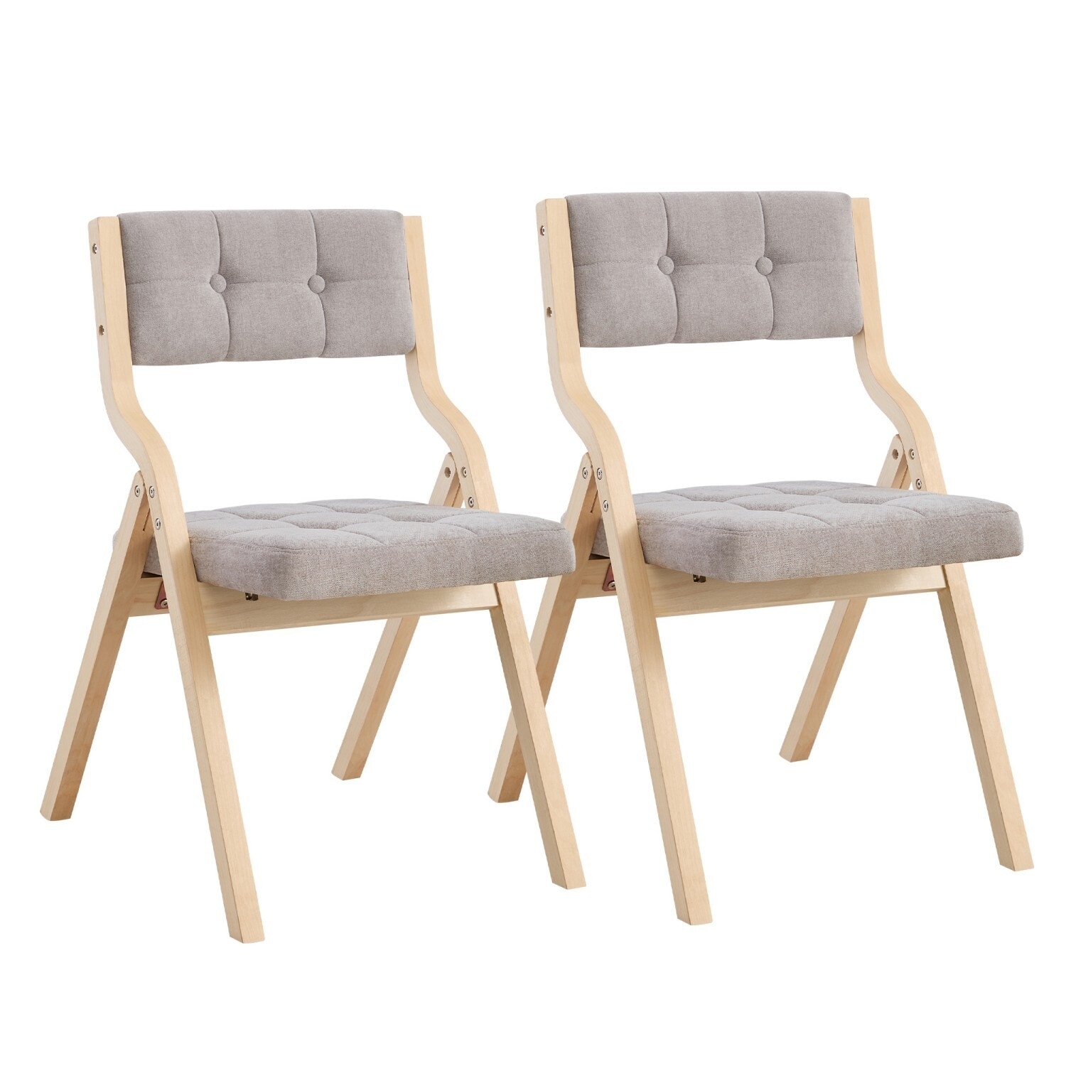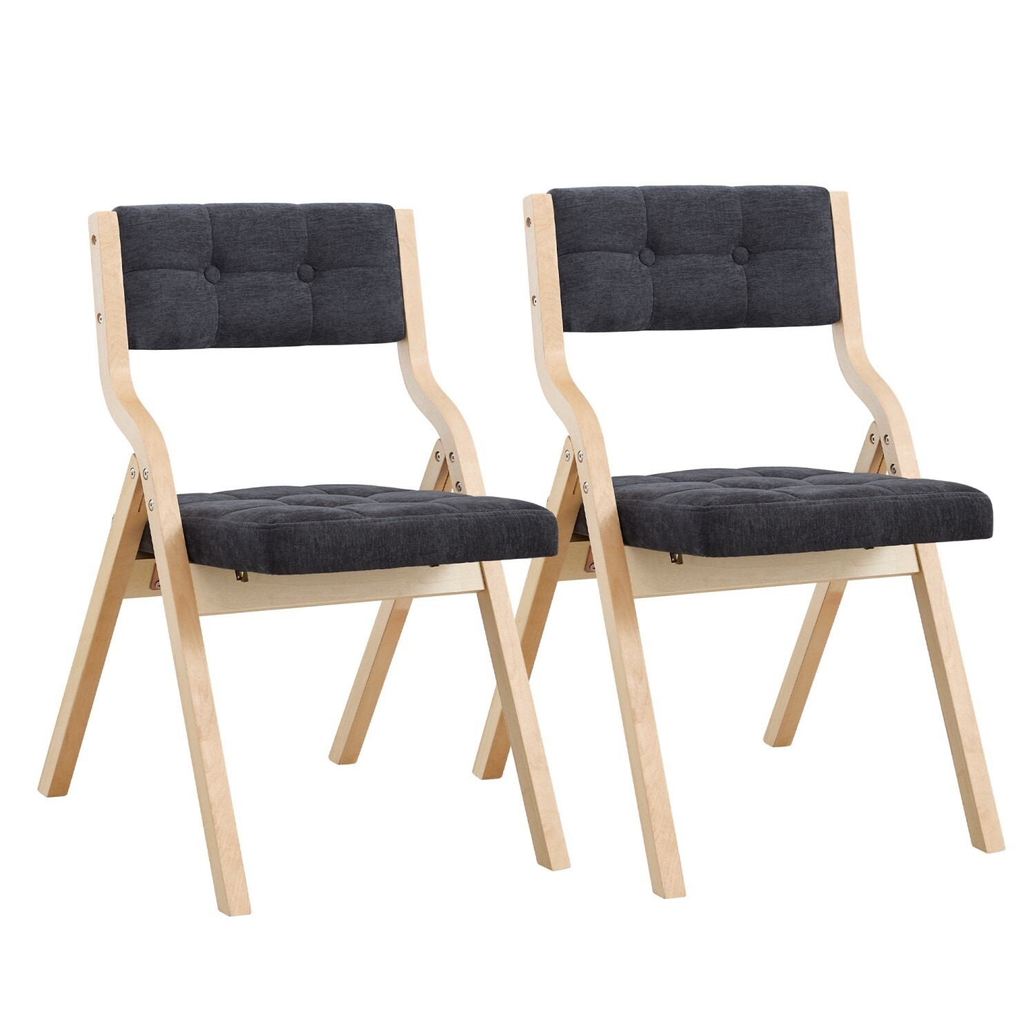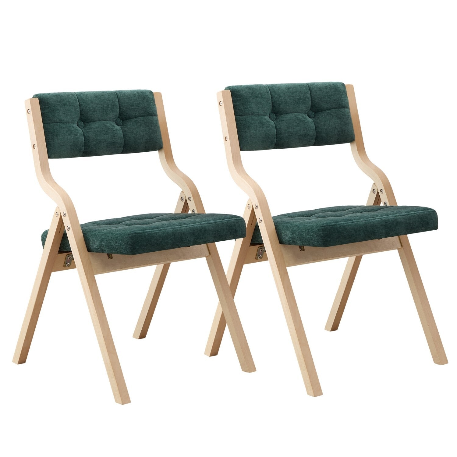 HOMYKA Wooden Folding Chairs with Cushion, Set of 2, Portable Foldable Cushion Chair with Wooden Frame