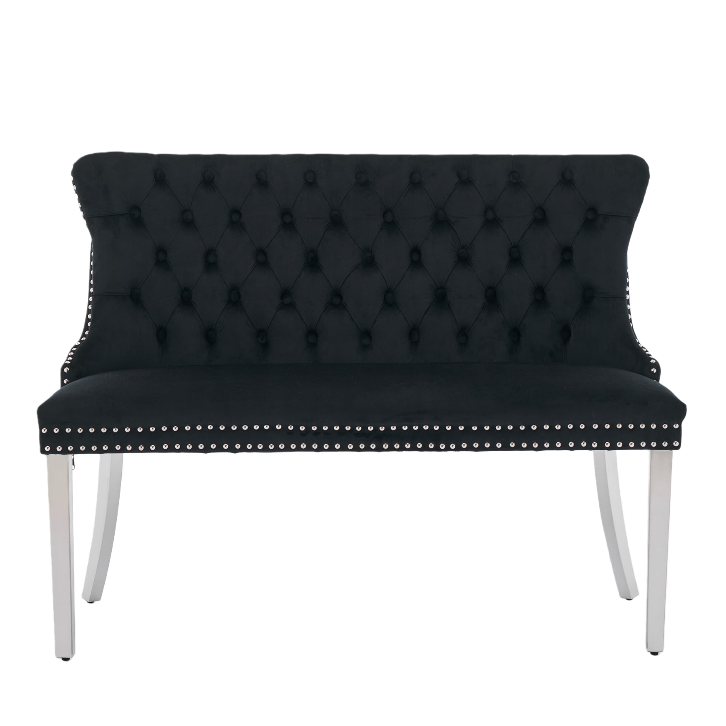 Velvet Double Dining Bench with Gold-Plated Legs and Tufted Back