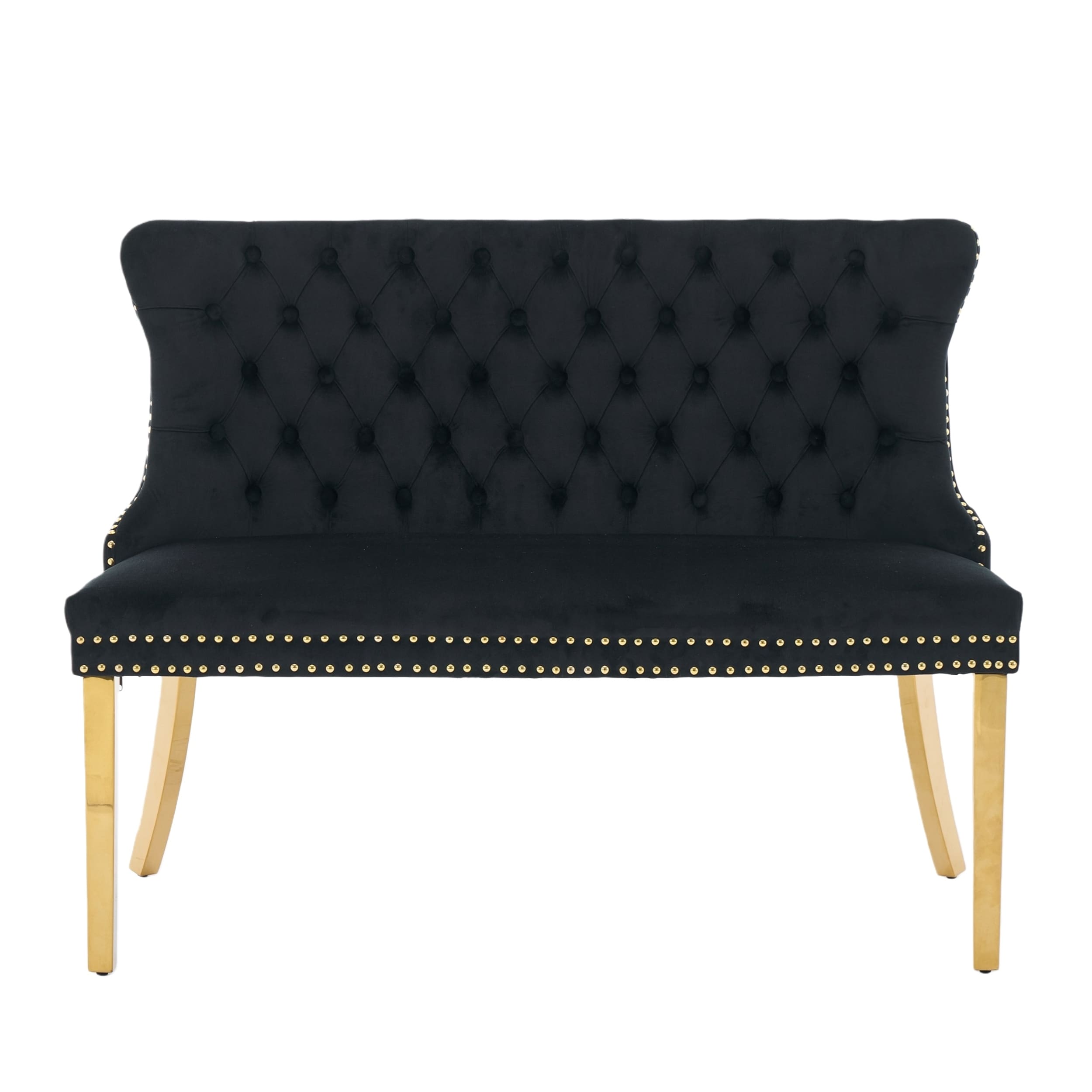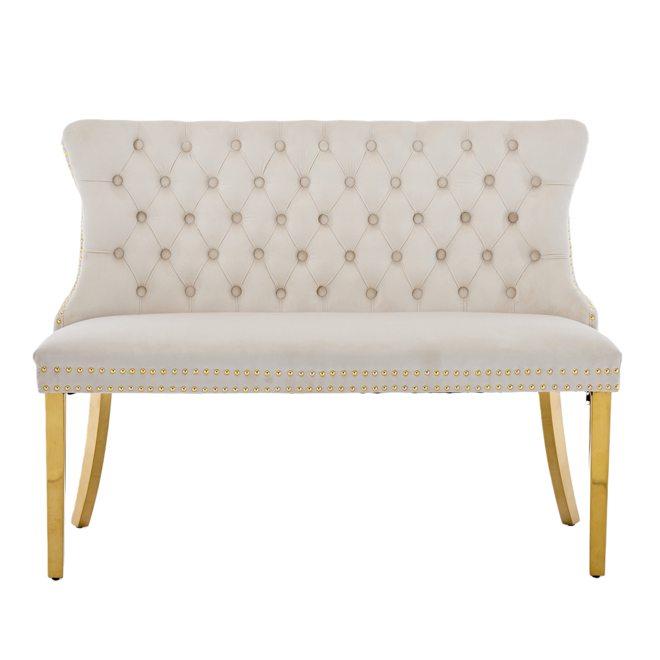 Velvet Double Dining Bench with Gold-Plated Legs and Tufted Back