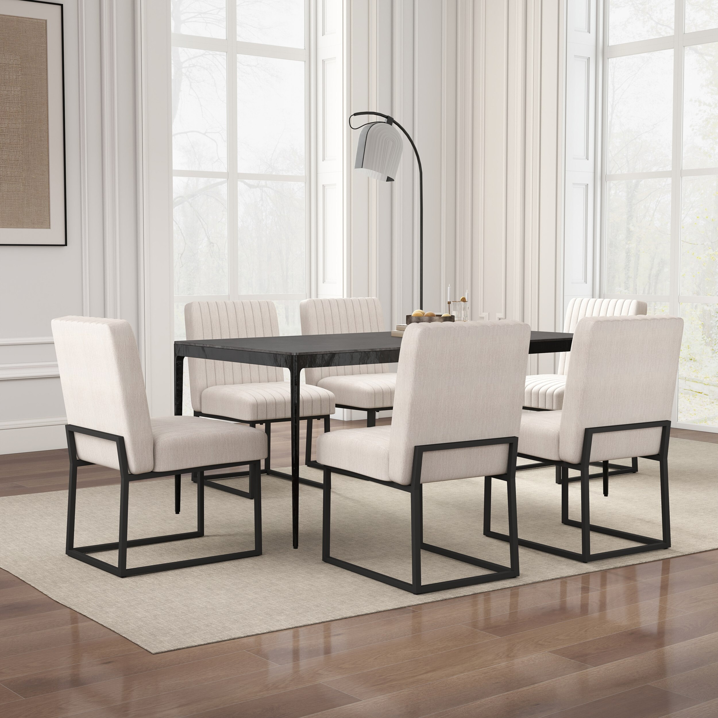 Brently Dining Chair w/ Cream Boucle Fabric & Matte Black Metal Legs