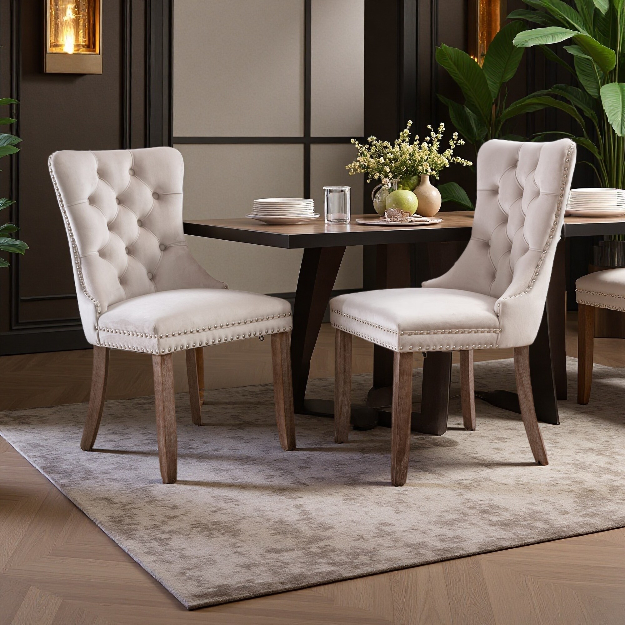 37.4"H Set of 2 Tufted Velvet High-Back Dining Chairs with Nailhead Trim & Solid Wood Legs