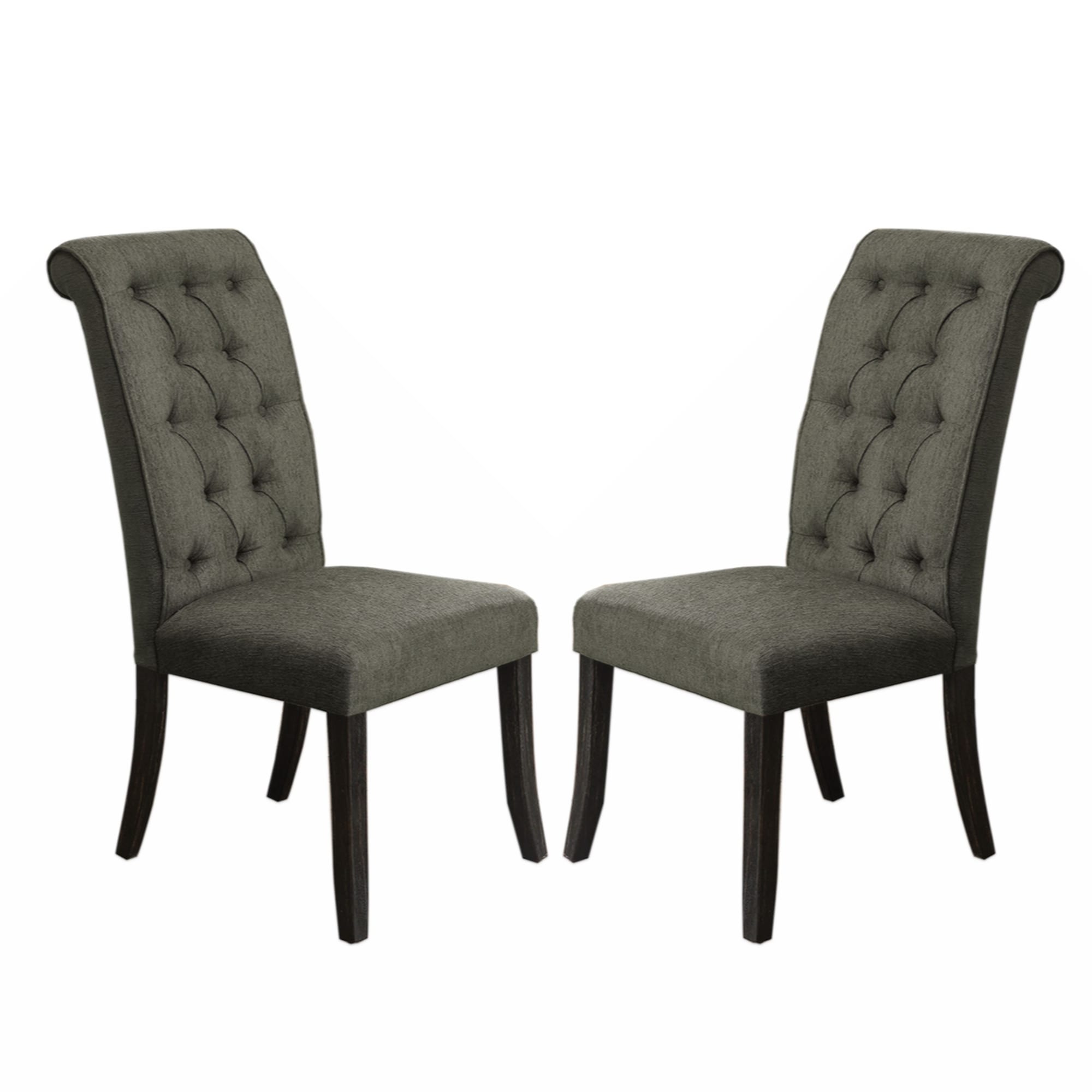 Set of 2 Upholstered Fabric Side Chairs in Antique Black and Gray