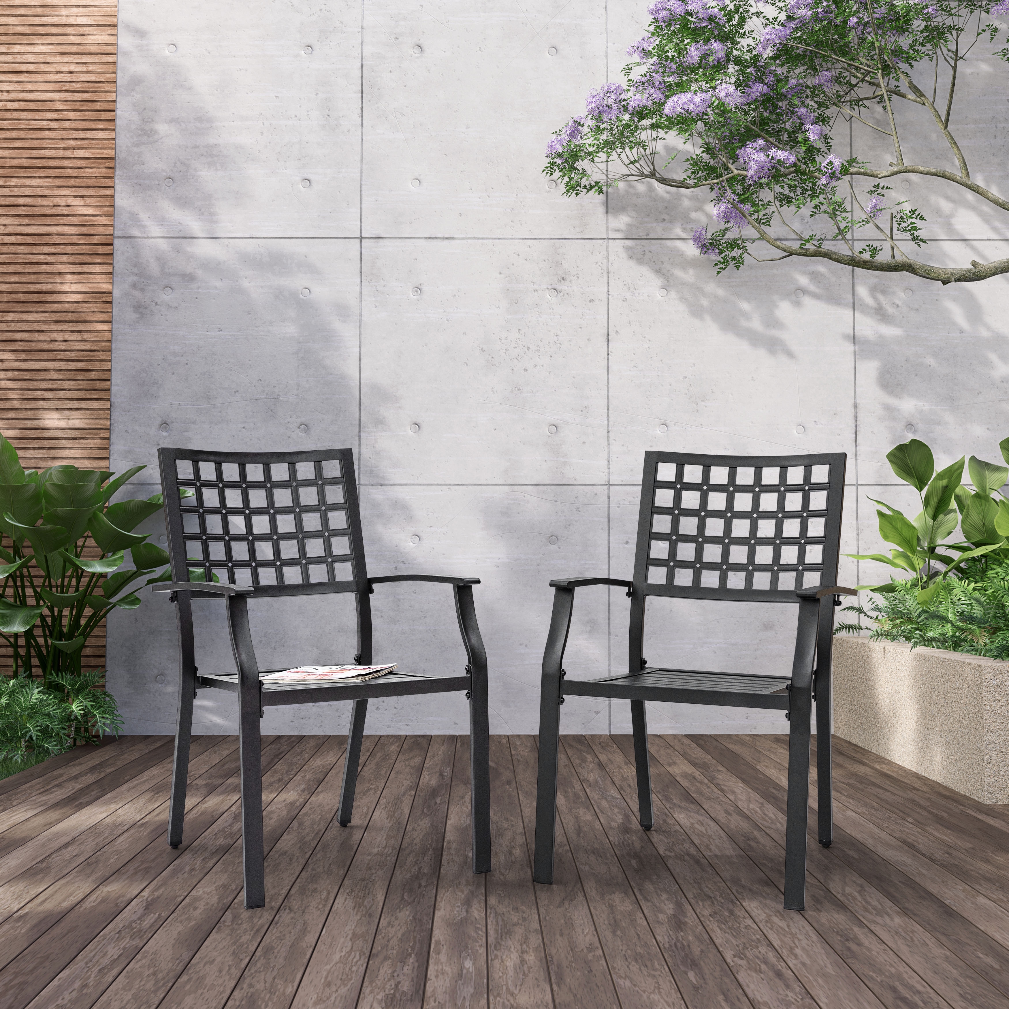 Outdoor 2-Piece Patio Chair Set, Black with Powder-coated Iron Frame