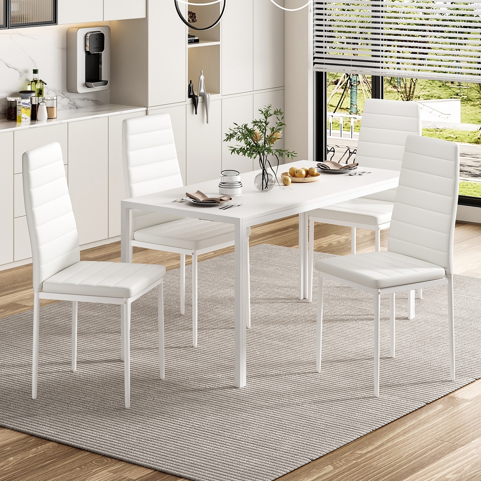 Set of 4 White PU Leather Dining Chairs for Kitchen, Modern Side Chairs with Sturdy Metal Frame