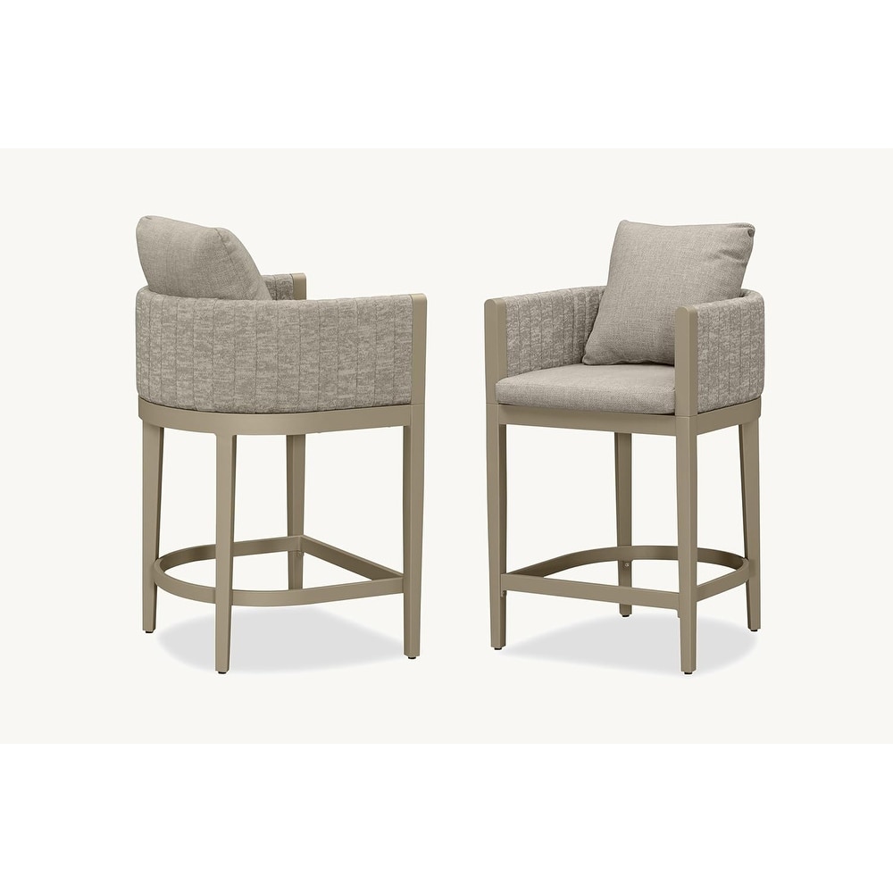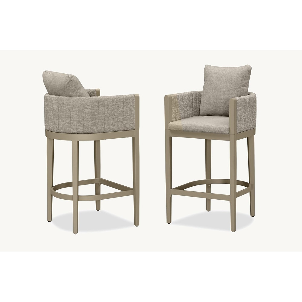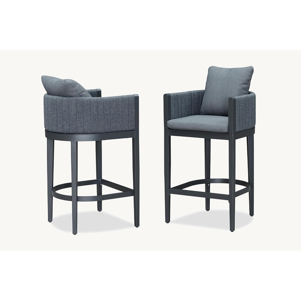 PURPLE LEAF Bar Stool Set of 2 Outdoor Rattan Bar Chair with Back Metal Bar Height Stool Wicker Barstool Dark Grey