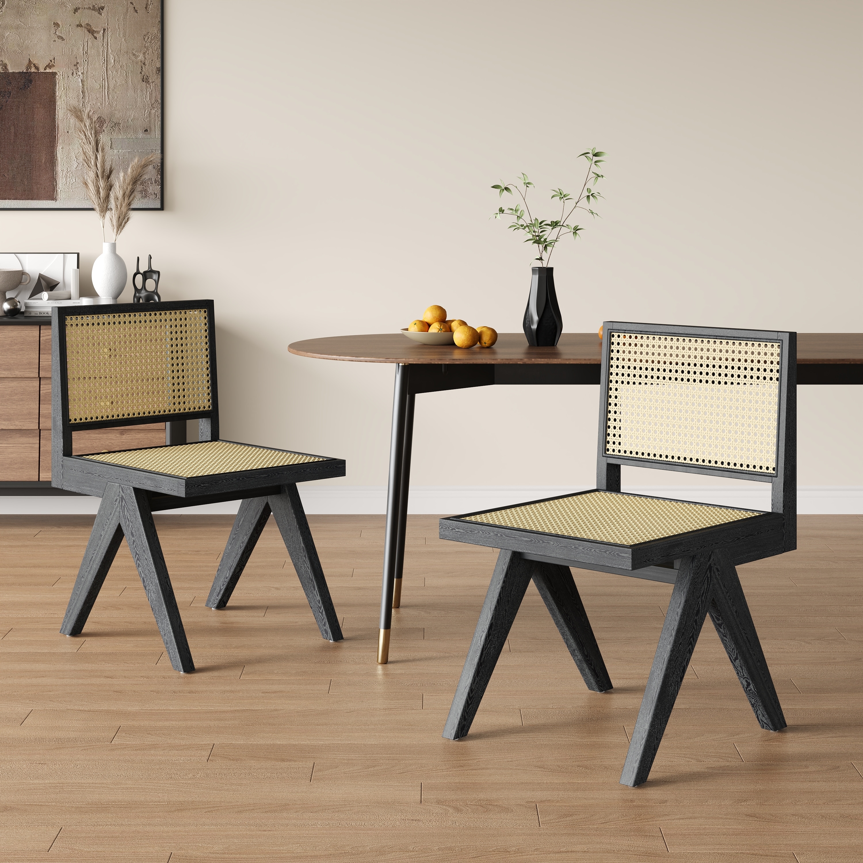 Rattan Dining Chair Set of 2, Armless Side Chairs with Wood Legs