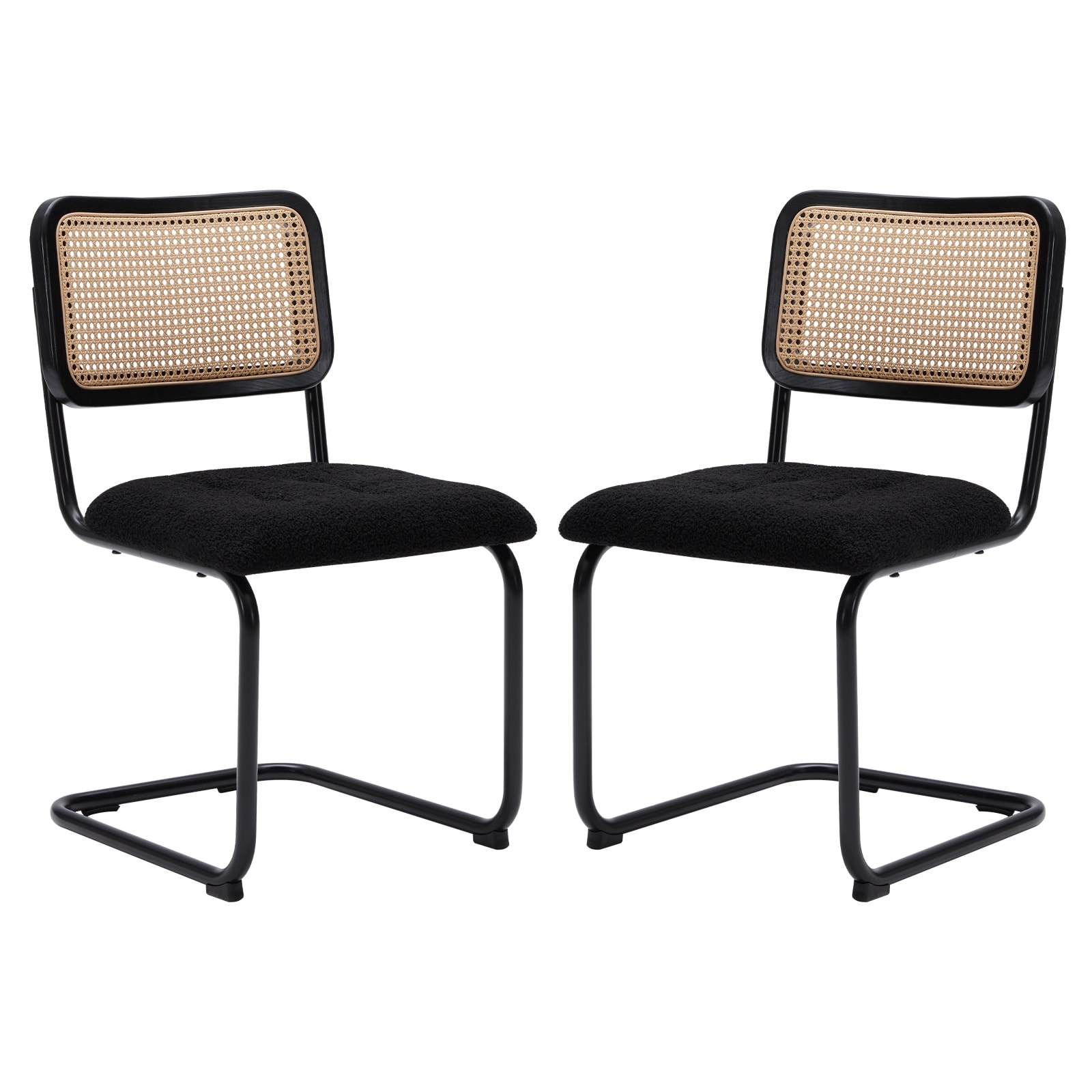 Dining Chairs Set of 2,Mid-Century Modern Chair Armless Mesh Backrest Cane Rattan Chairs for Home Dining Room