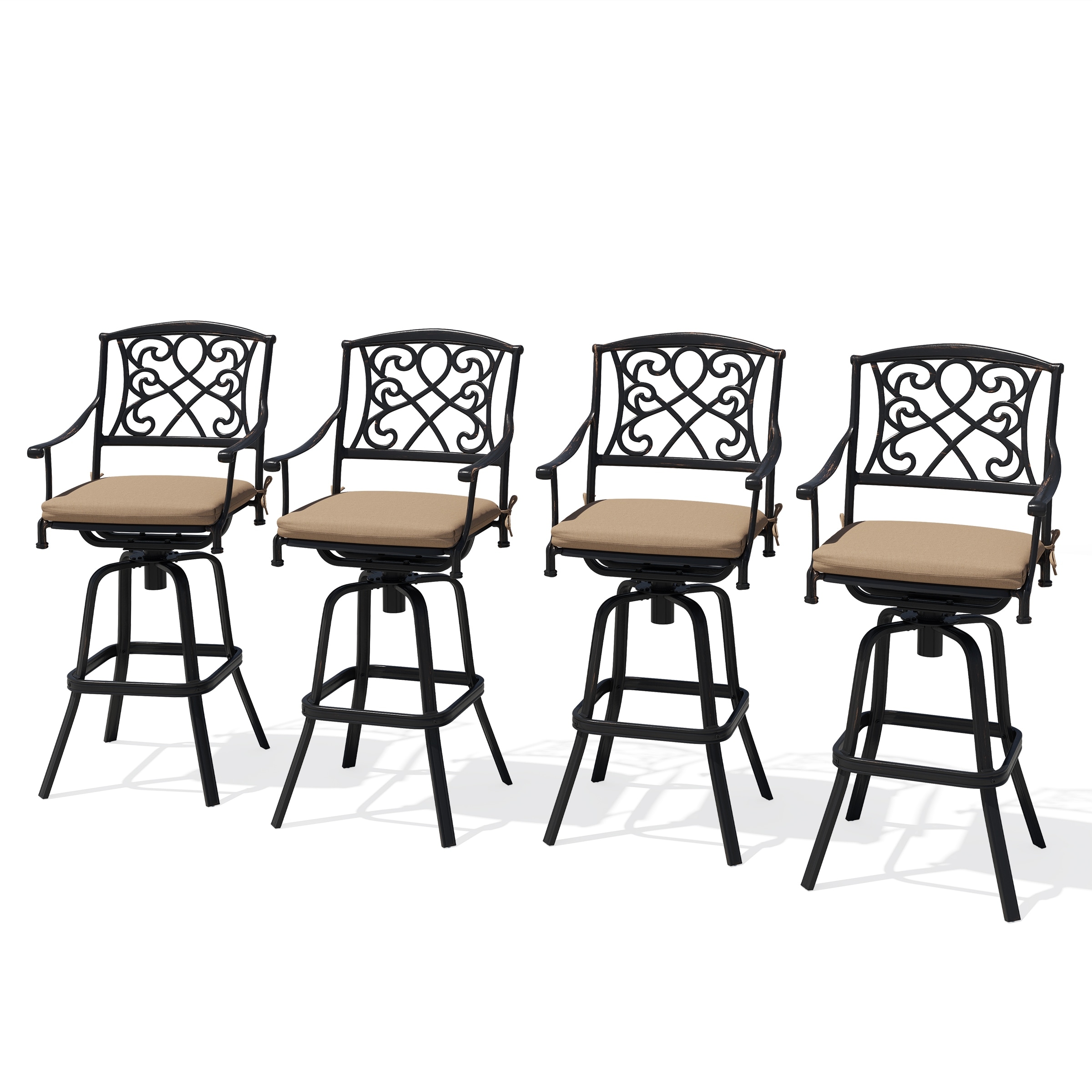 Set of 2/4 Outdoor Cast Aluminum Swivel Bar Stools with Sunbrella Fabric Cushion