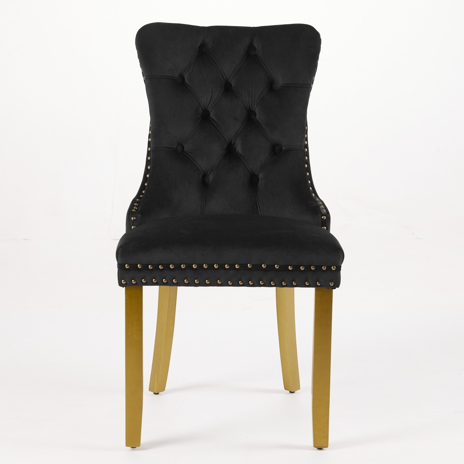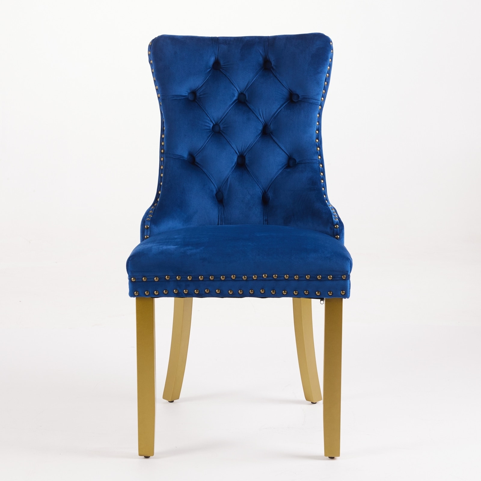 Modern Chairs with Lion Head Pull Ring, Velvet Upholstered Dining Chair with Golden Wooden Legs Nailhead Trim 2-Pcs Set