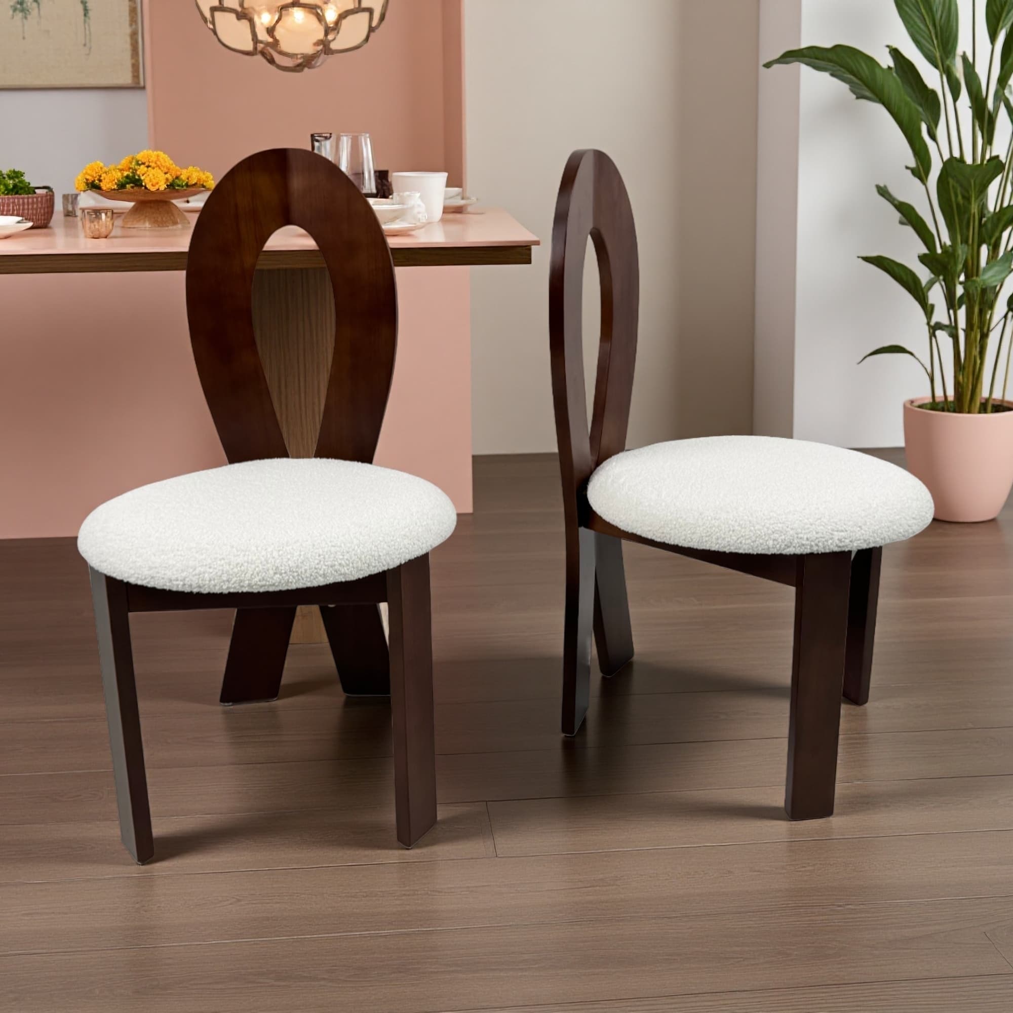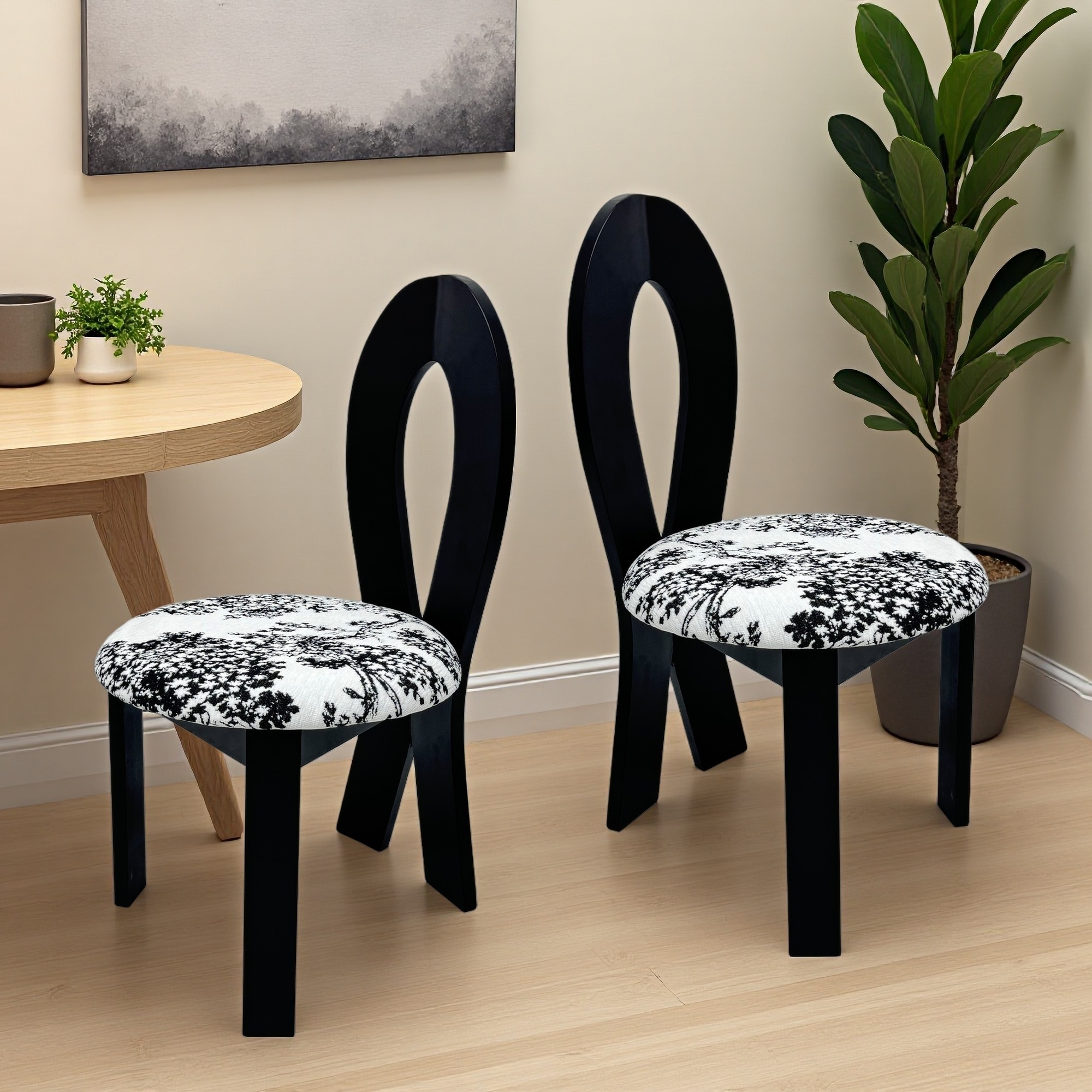 Mid-Century Modern Wood Leg Dining Chairs Set of 2