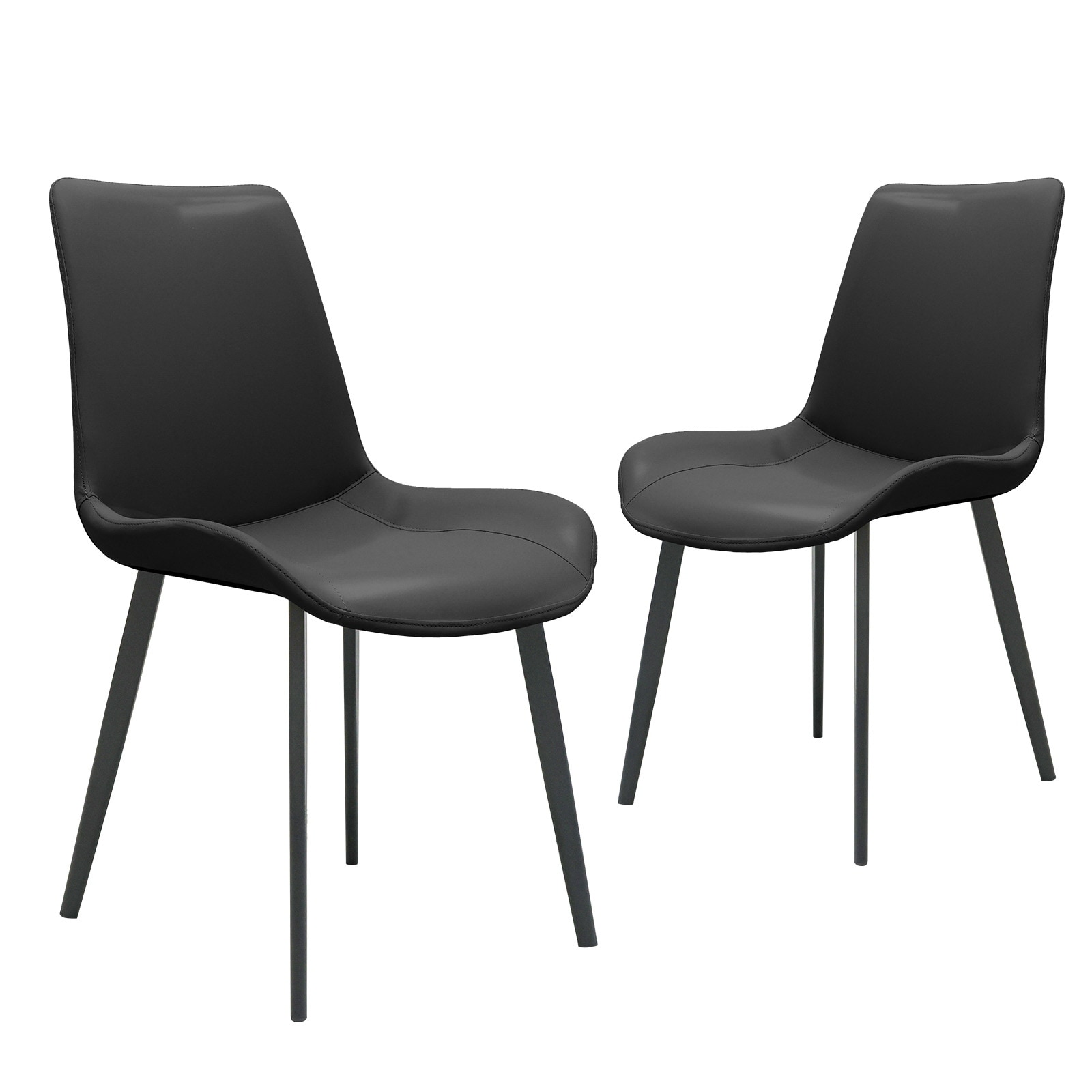 Black PU Leather Dining Chair with Metal Legs, Modern Upholstered Chair Set of 2 for Kitchen, Restaurant