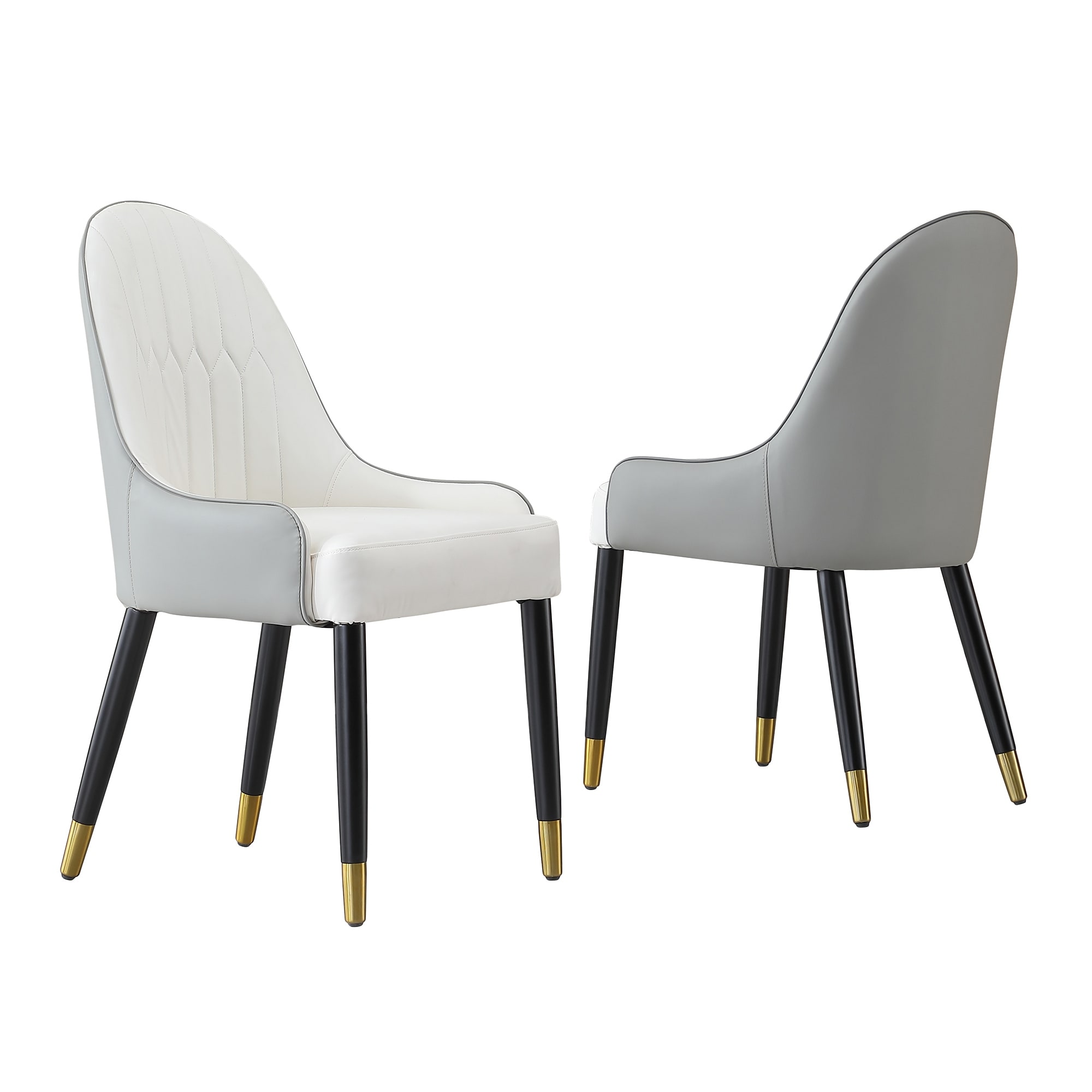 Tufted Buttons PU Velvet Dining Chair set of 2, Black/ Gray