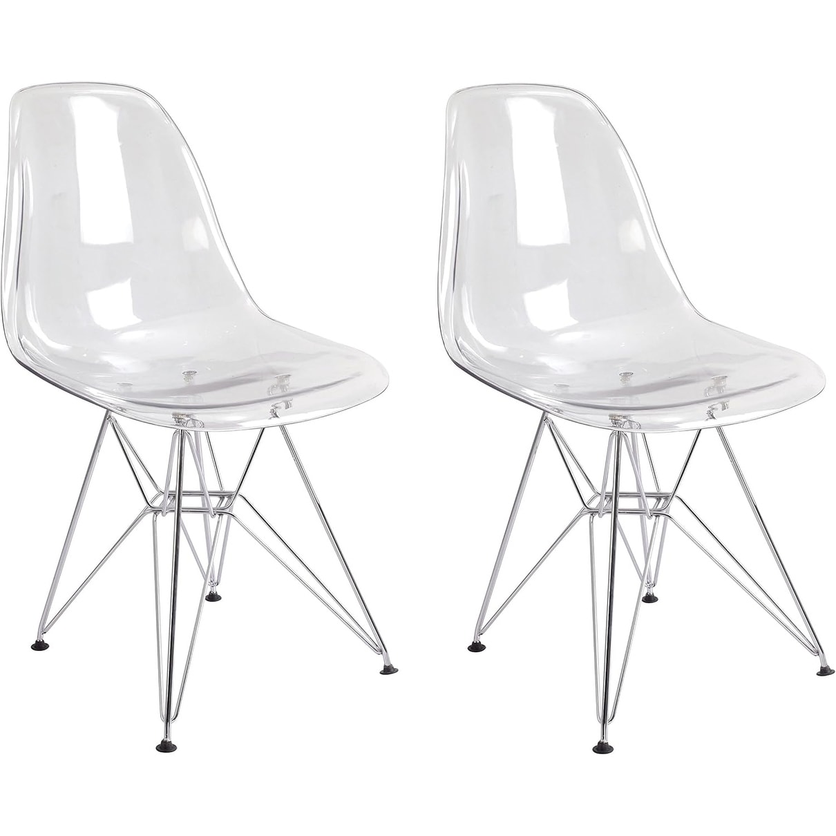 Transparent Eiffel Tower Side Dining Chair with Chrome Base, Set of 2, Mid-Century Design