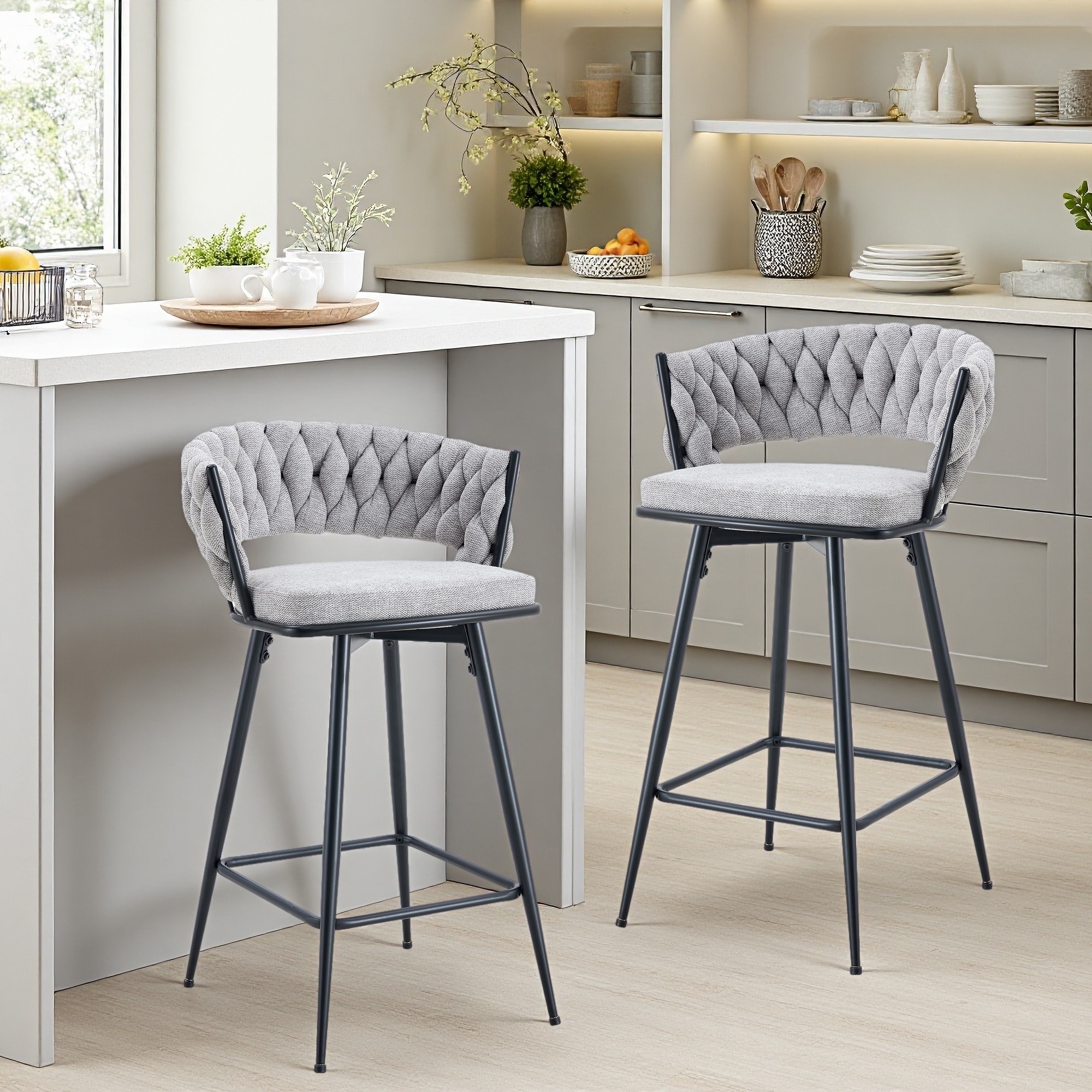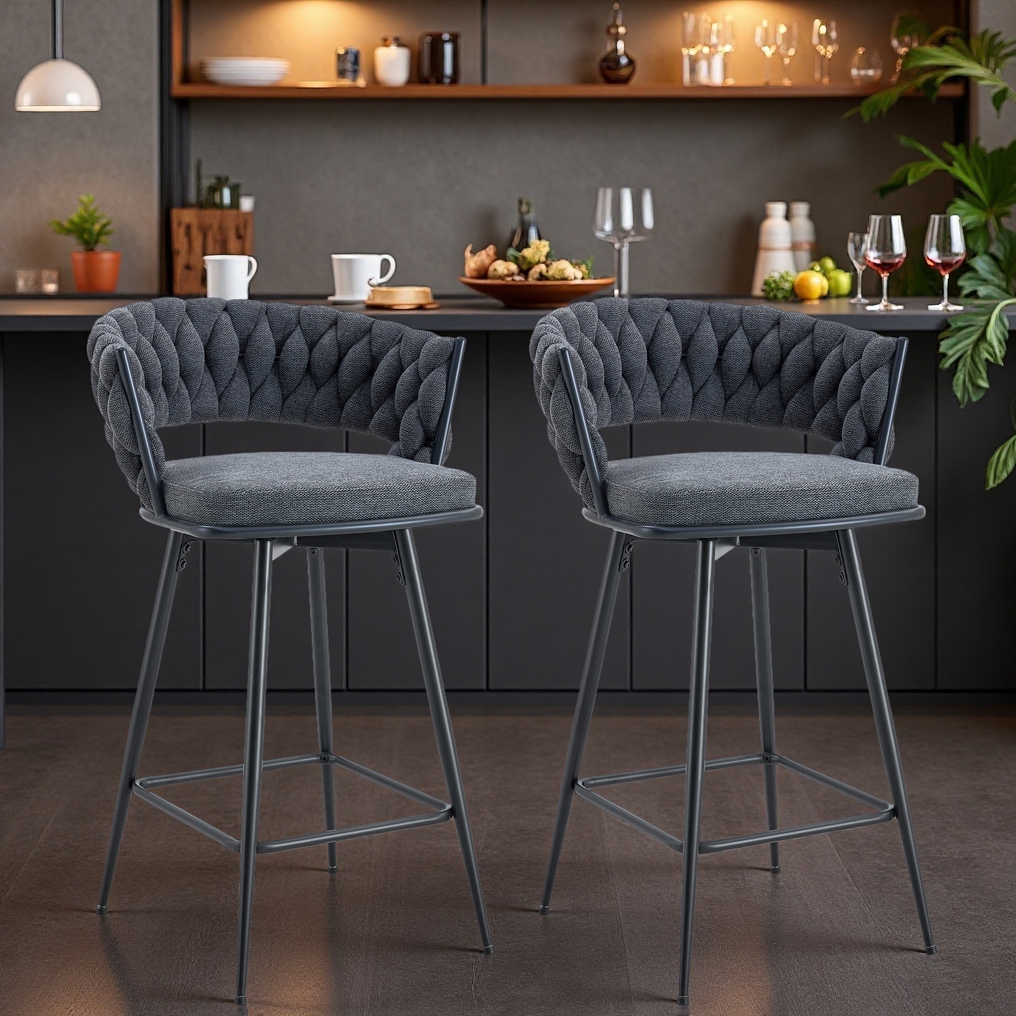 Swivel Bar Stools Set of 2 with Linen Cushions