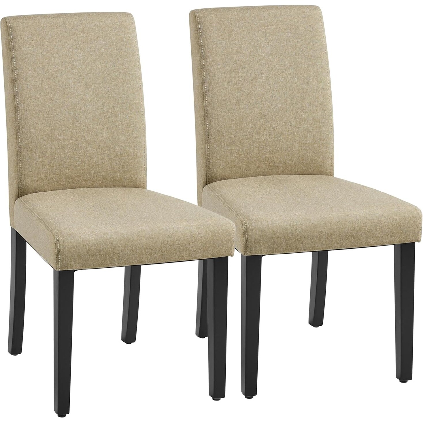 Set of 2 Fabric Upholstered Parson Kitchen Chairs with Padded Seat and Solid Wood Legs for Dining Room/Restaurant, Khaki