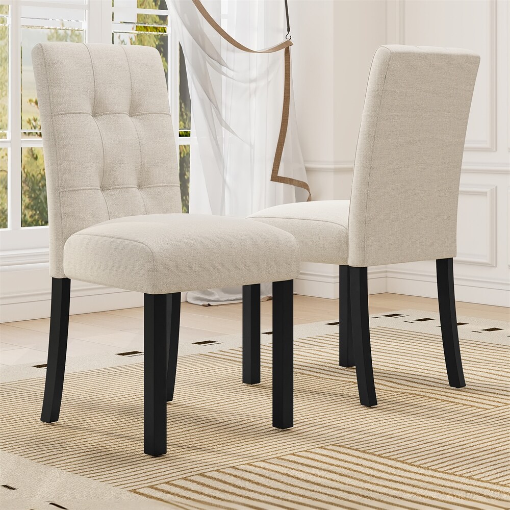 4 PCS Tufted Dining Chair,Rustic Linen Upholstered w/Rubber Wood Legs
