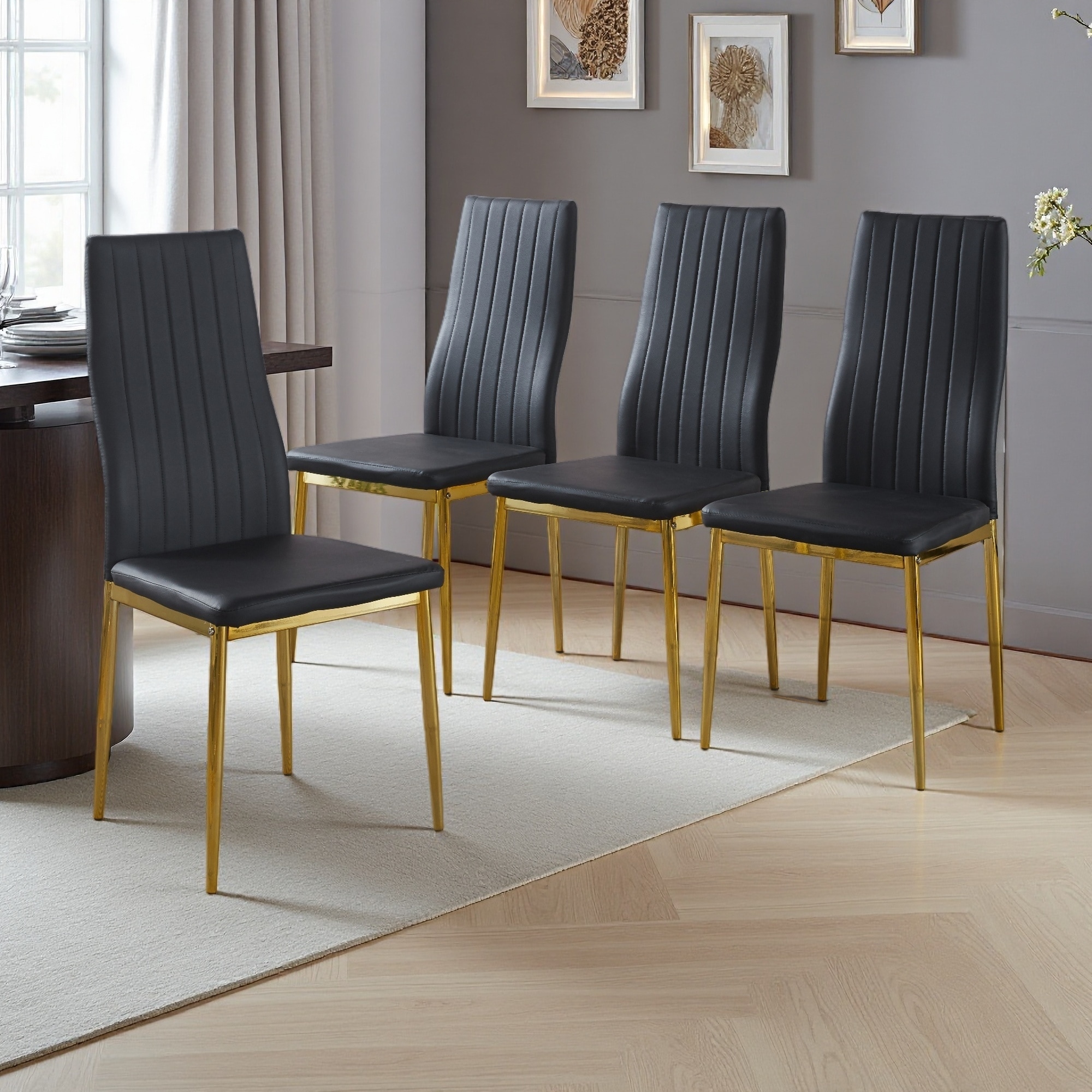 32.6"H Set of 4 PU Leather Dining Chairs with Wide Cushion & Metal Legs