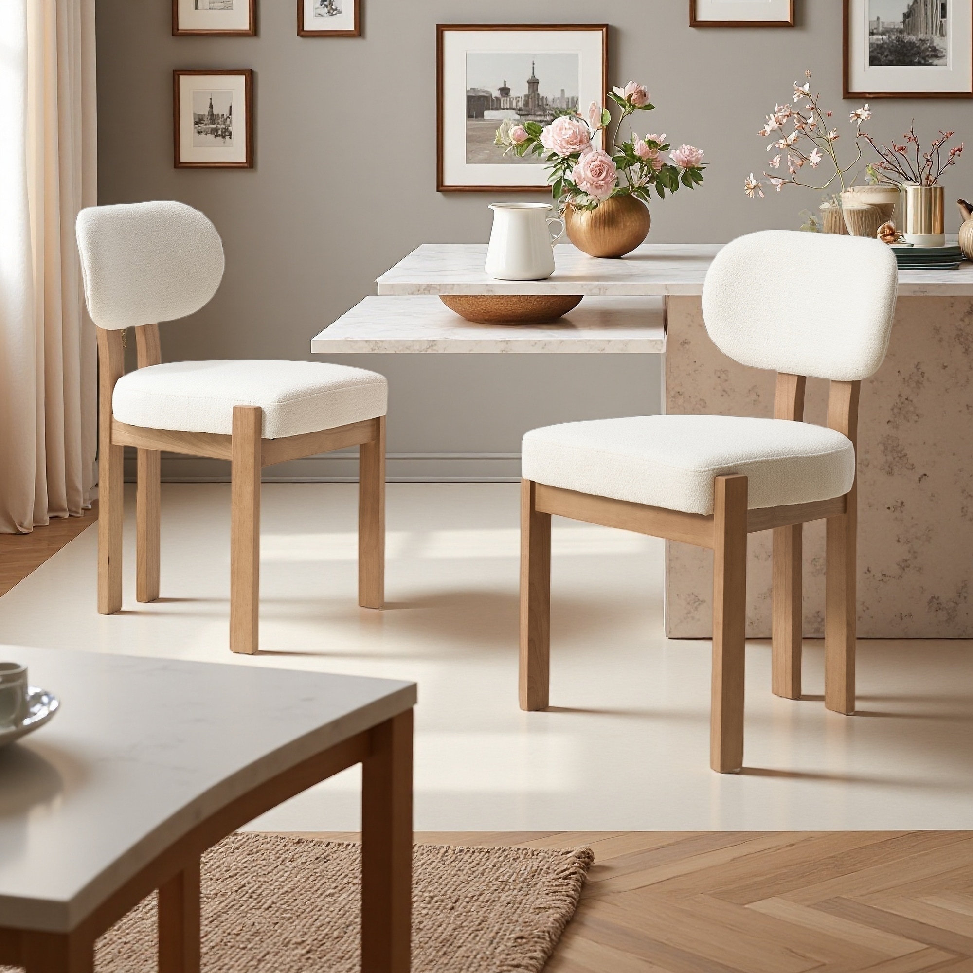 Wooden Chenille Dining Chairs Set of 2 with Adjustable Feet