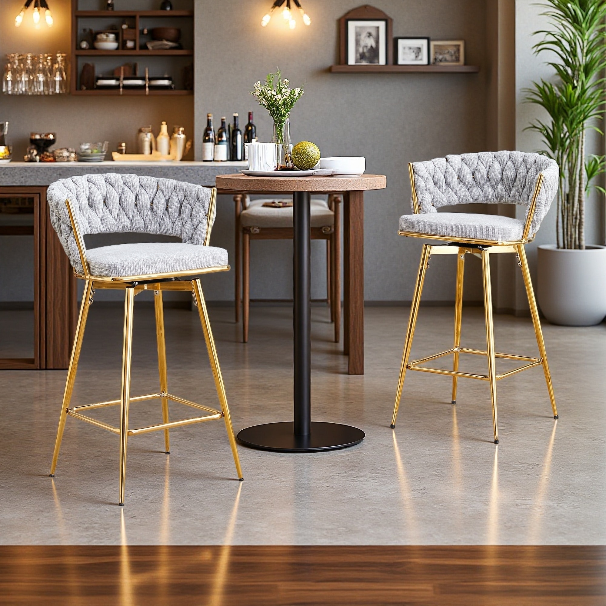 Swivel Bar Stools Set of 2 with Linen Cushions