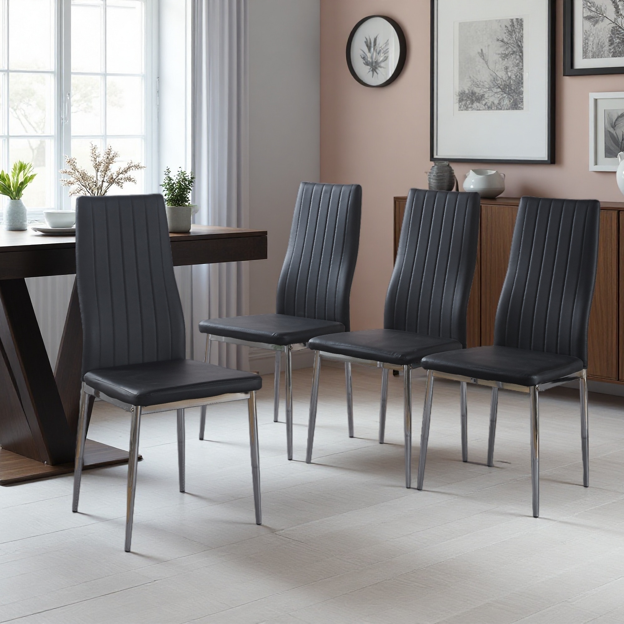 PU Leather Dining Chairs Set of 2 with Chrome Metal Legs
