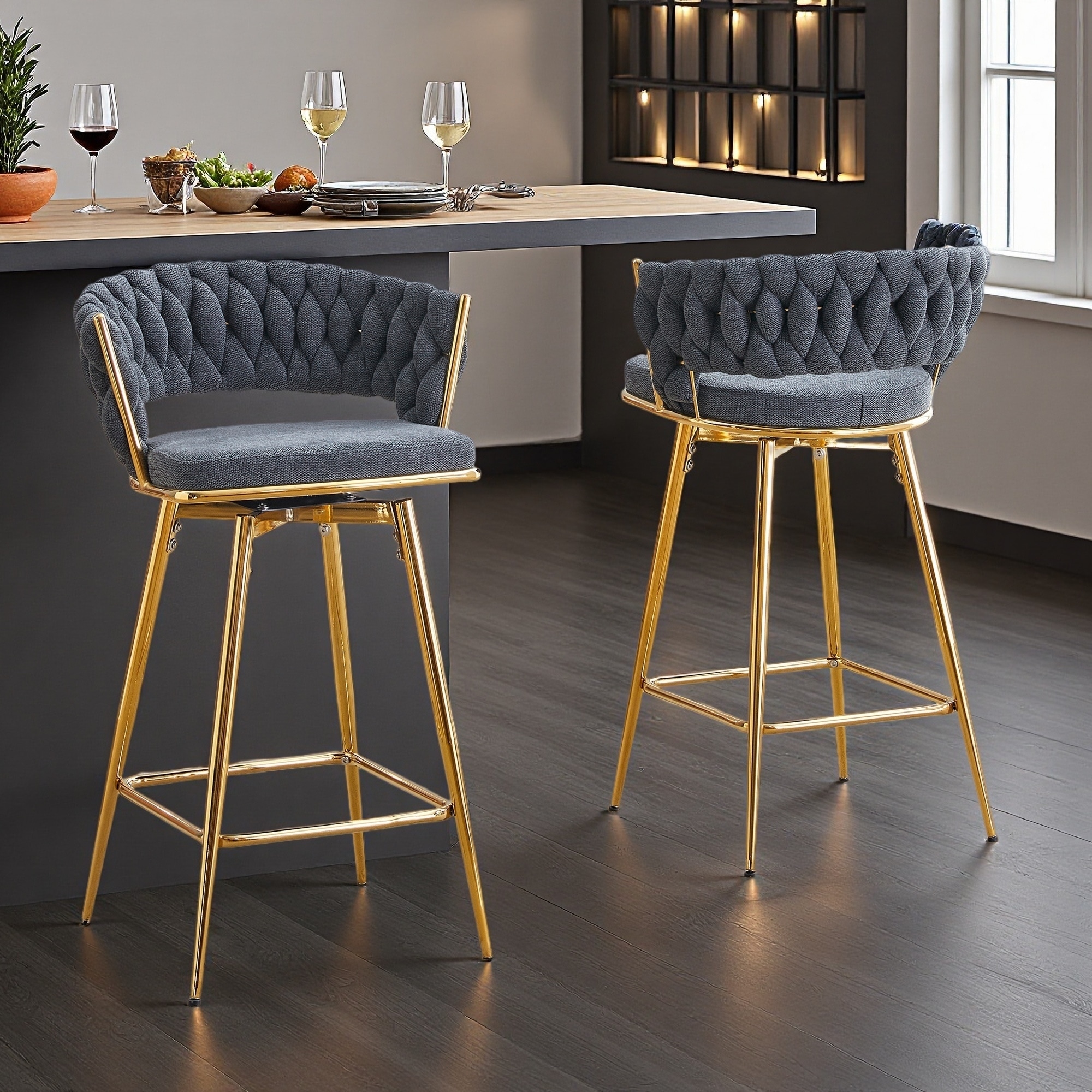 Swivel Bar Stools Set of 2 with Linen Cushions